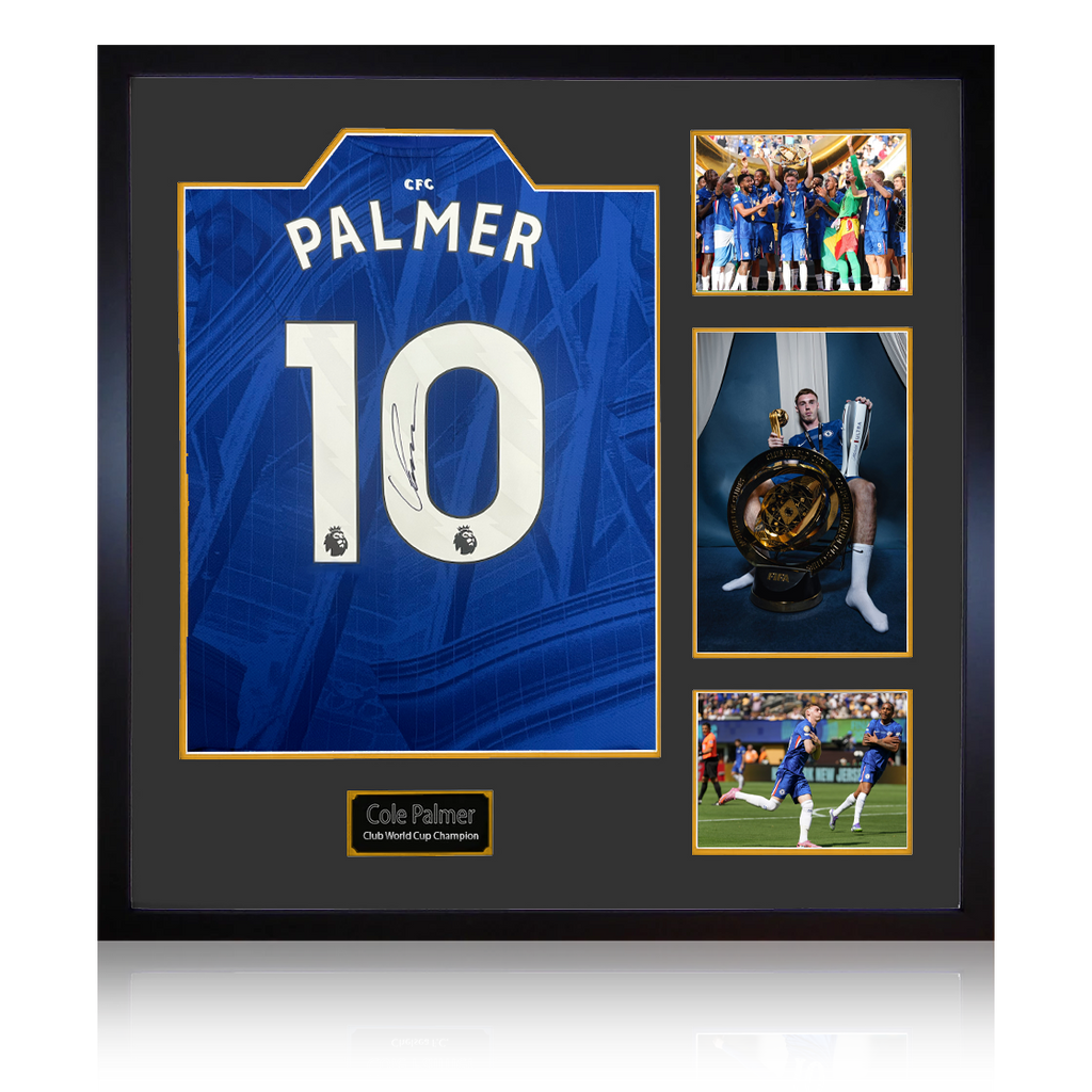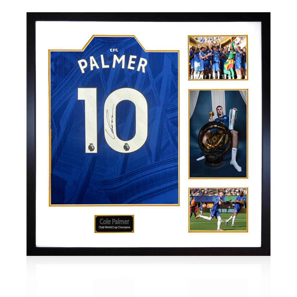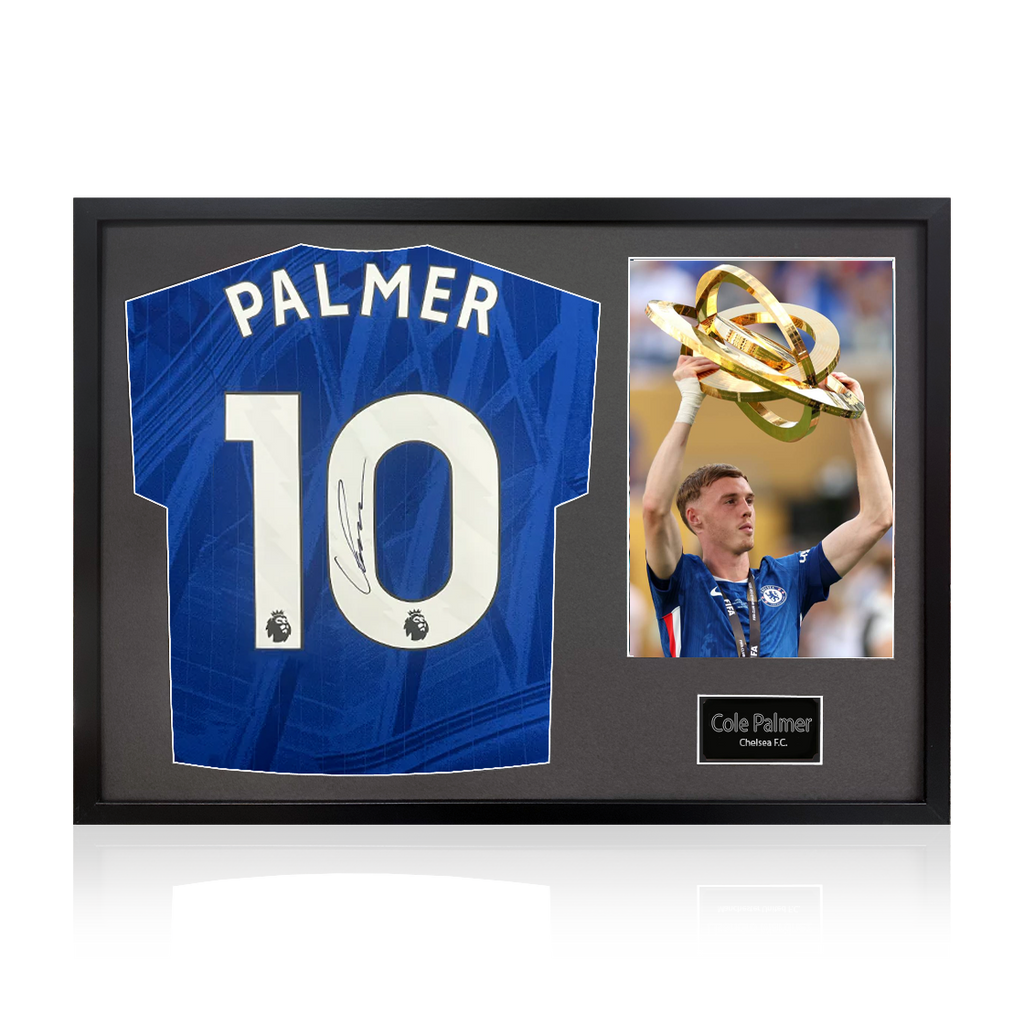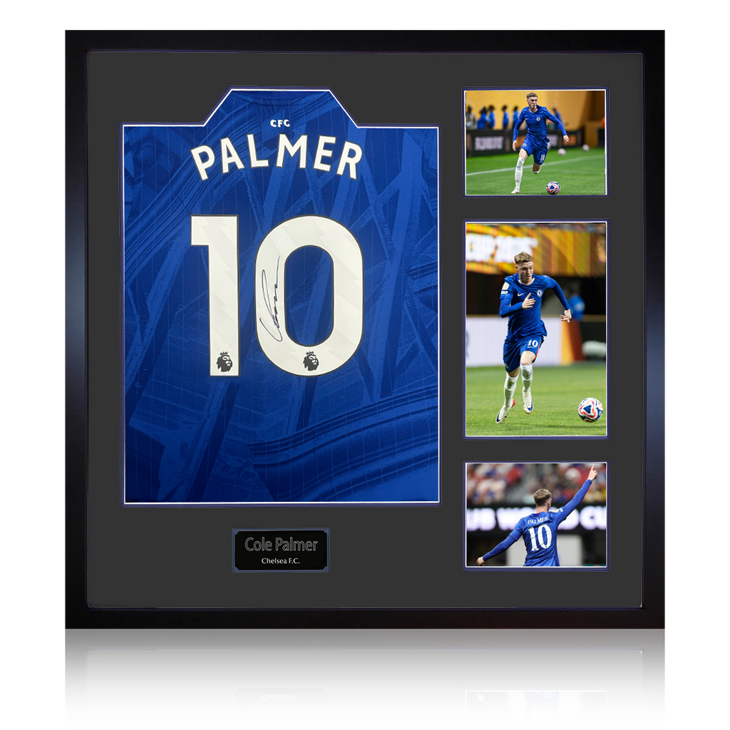 Beautifully presented Elite Frame with signed Chelsea 25/26 shirt by Cole Palmer. This item was signed at an exclusive Fan Cave signing with Cole on the 04/04/25. The frame measures approximately 820mm x 820mm. This item is acc...
