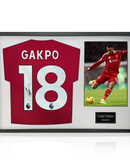 Beautifully presented Classic Frame with signed Liverpool shirt from Cody Gakpo. The autograph includes an official ACG hologram for authenticity purposes. This item measures approximately 690mm x 480mm. This item is accompanied with an certificate of authenticity from The Fan Cave.