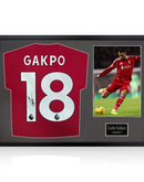 Beautifully presented Classic Frame with signed Liverpool shirt from Cody Gakpo. The autograph includes an official ACG hologram for authenticity purposes. This item measures approximately 690mm x 480mm. This item is accompanied with an certificate of authenticity from The Fan Cave.