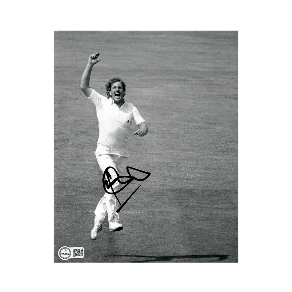 A signed 10x8 of Ian Botham. This item is accompanied with an certificate of authenticity from The Fan Cave.