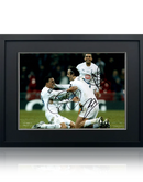 Beautifully presented Compact Frame with signed image by Dimitar Berbatov, Aaron Lennon & Jermaine Jenas. This item measures approximately 550mm x 450mm. This item is accompanied with an certificate of authenticity from The Fan Cave.