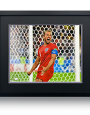 Large framed 20x16 England photo signed by Harry Kane. This fantastic looking display measuring approximately 690mm x 595mm. This item is accompanied with an certificate of authenticity from The Fan Cave.