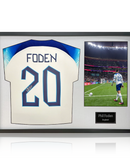 A signed Phil Foden England shirt. He made his England debut on 05/09/20 when he started against Iceland in a 1-0 victory.