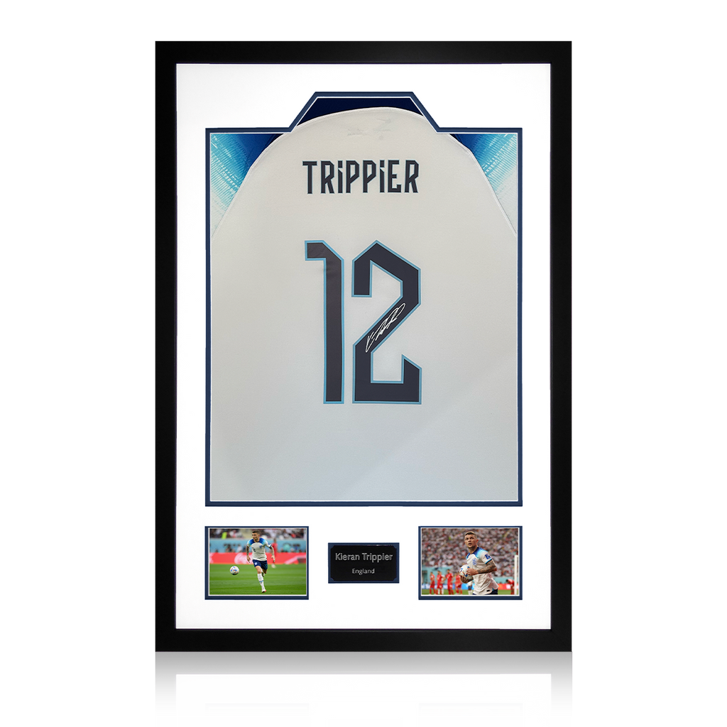 A framed 2022/2023 England signed shirt by Kieran Trippier who made his senior international debut in June 2017 and was part of the team that reached the semi-finals of the 2018 FIFA World Cup. This item was signed at an exclus...