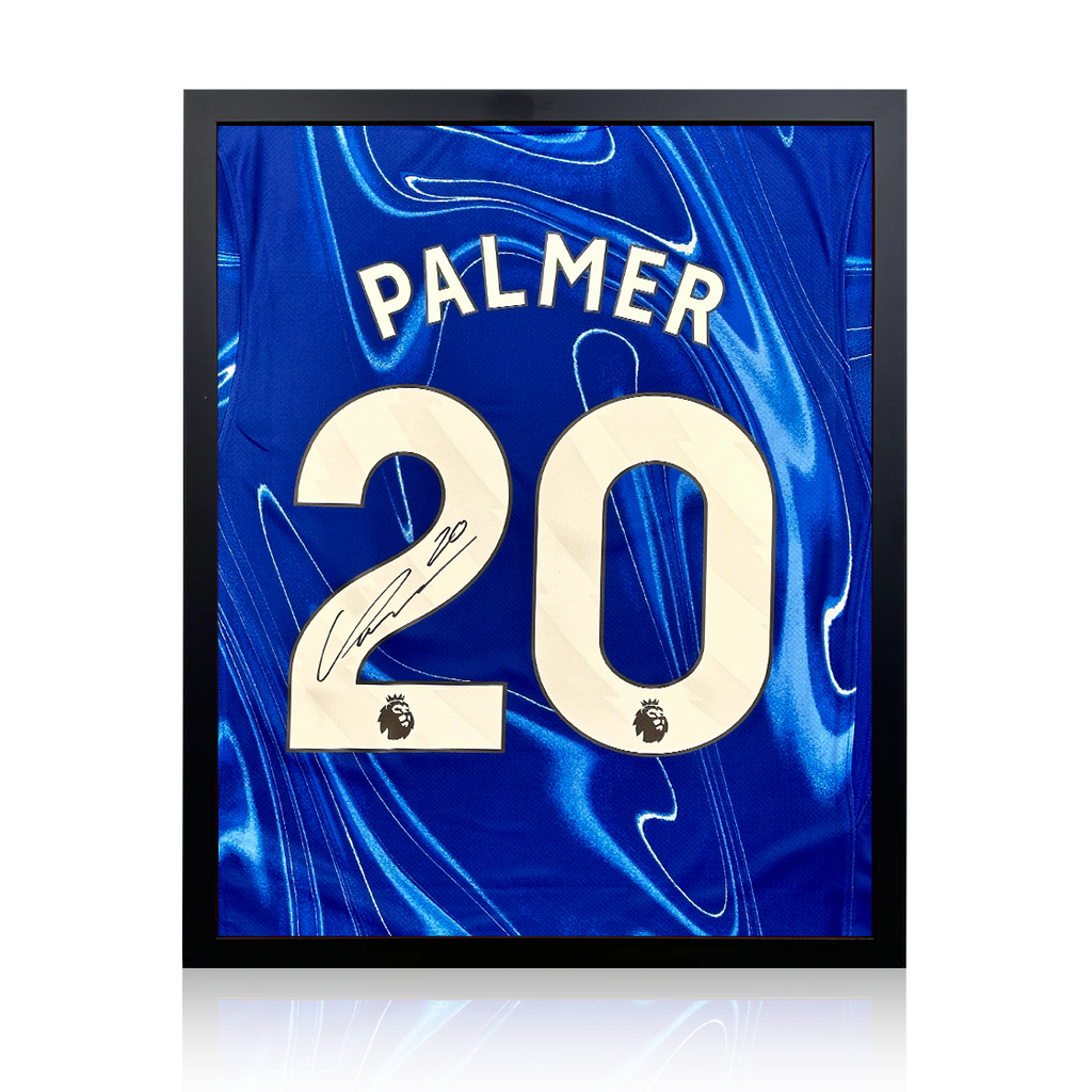 Framed shirt presentation signed by Chelsea striker Cole Palmer. This framed display contains a signed shirt. This item was signed at an exclusive Fan Cave signing with Cole on 29/08/24.