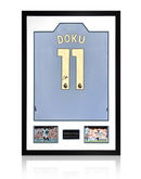 Jérémy Doku Signed Manchester City Shirt Premium Frame