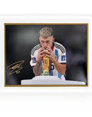 Mounted photo, signed by Agentinian defender and World Cup Winner; Lisandro Martínez.