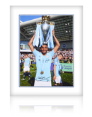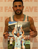 A signed mounted photo by Riyad Mahrez. So far in his Manchester City career his has won 9 trophies with the club which include 3 Premier League titles, 1 FA Cup, 2 Community Shields and 3 League Cups in a row. This item measures approximately 500mm x 400mm
