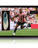 Sheffield United display with a signed match-worn boot by Tyrese Campbell. The United forward's boot is from the 24/25 season against Sunderland A.F.C. in the Play-Off final. This is the left boot. This item measures approximately 690mm x 480mm. This item is accompanied with an certificate of authenticity from The Fan Cave.