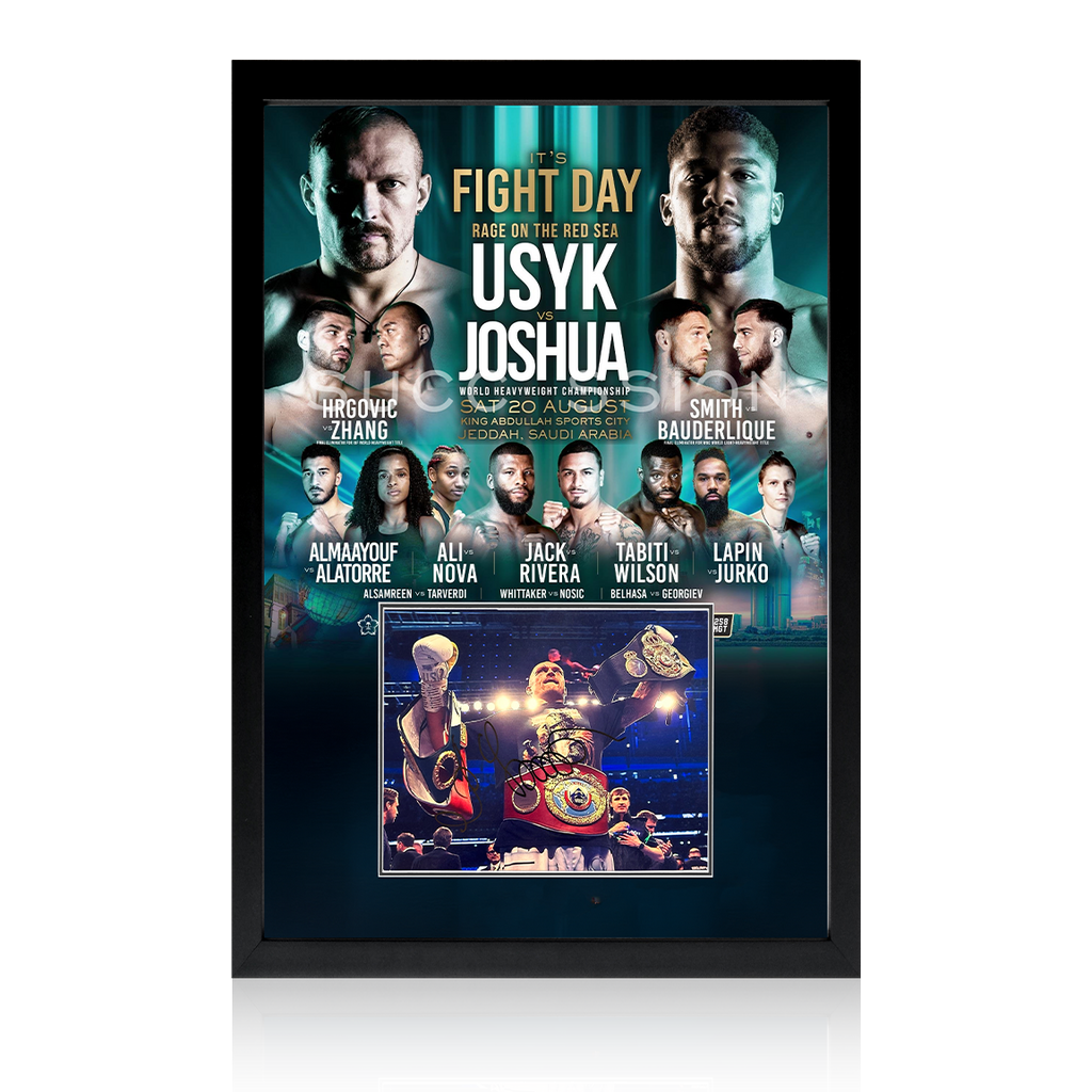 This wonderfully presented framed poster mount display, contains a signed image of Oleksandr Usyk.