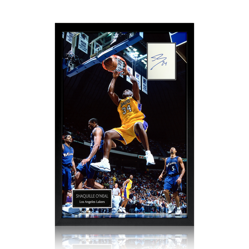 Shaquille O'Neal signed index card in a Iconic Frame. This would make a great addition to any NBA collection.
