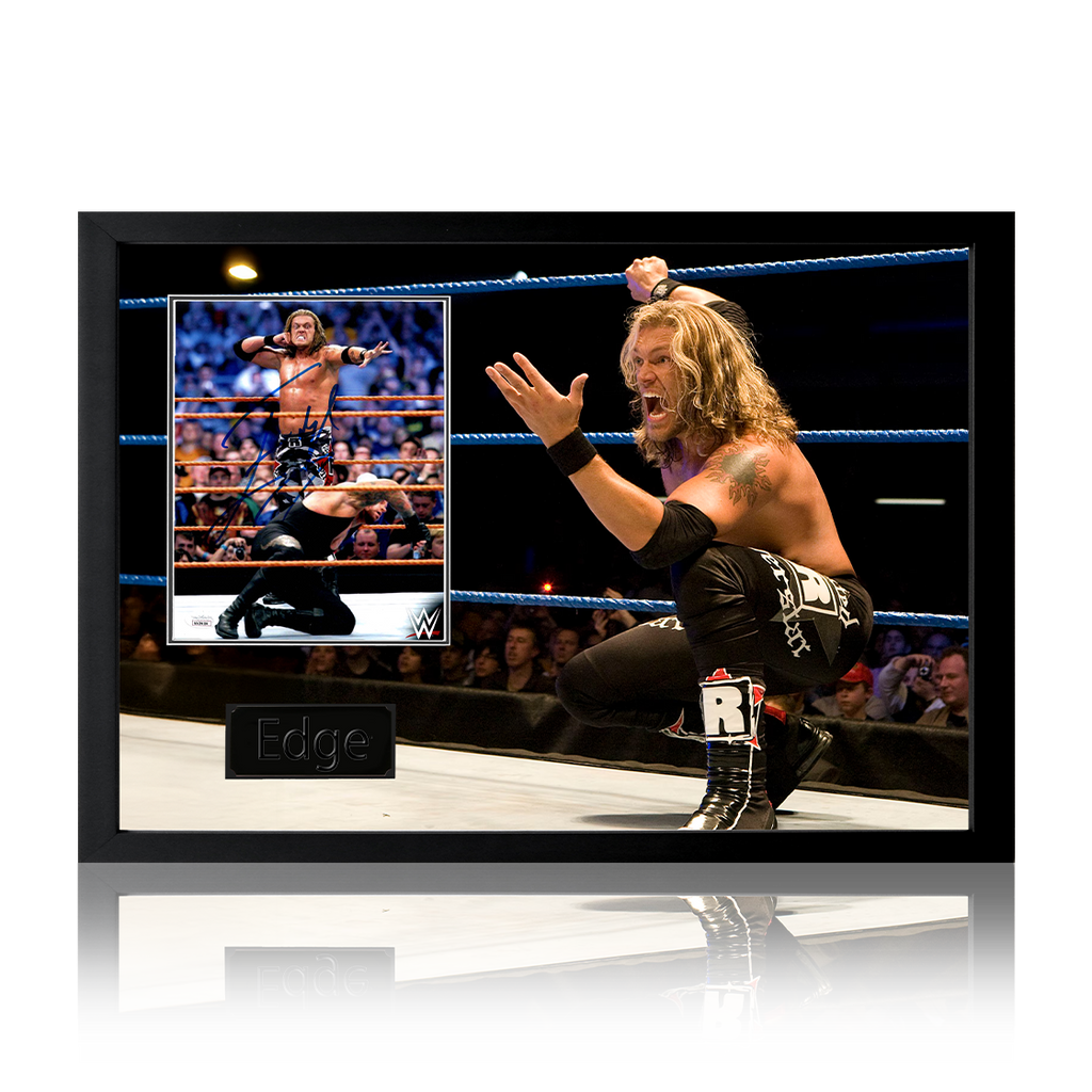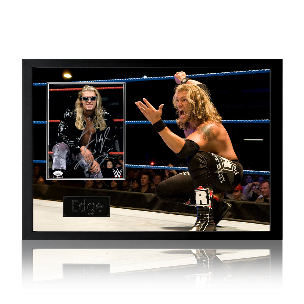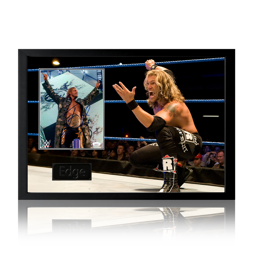 Beautifully presented Iconic Frame with signed 10x8 image of Edge (Adam Copeland). This item measures approximately 690mm x 480mm. This also comes with authenticity from JSA Authentication. This item is accompanied with an cert...
