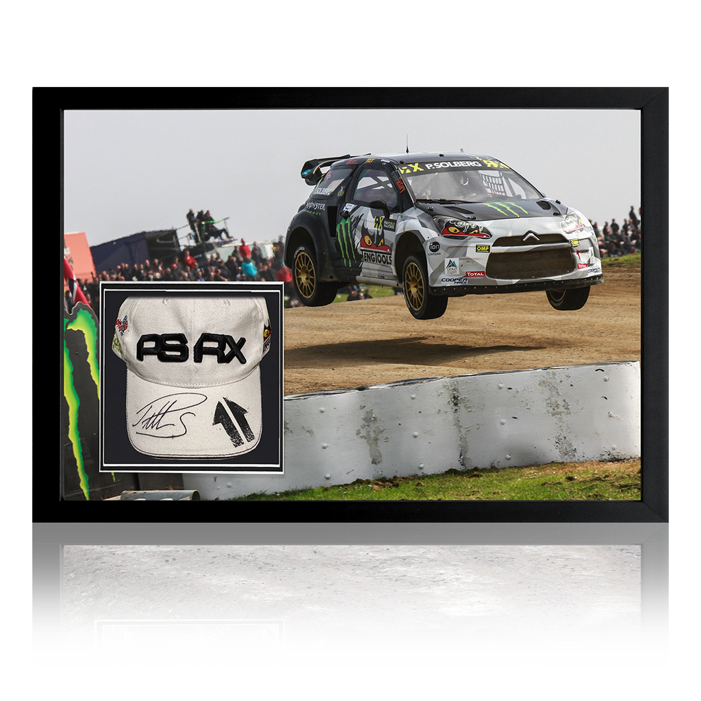 Poster mounted and framed official PS-RX cap signed by motorsport world champion and fan favourite; Petter Solberg. This presentation of his World RX Citroen DS3 would make a fantastic addition an any motorsport collection.