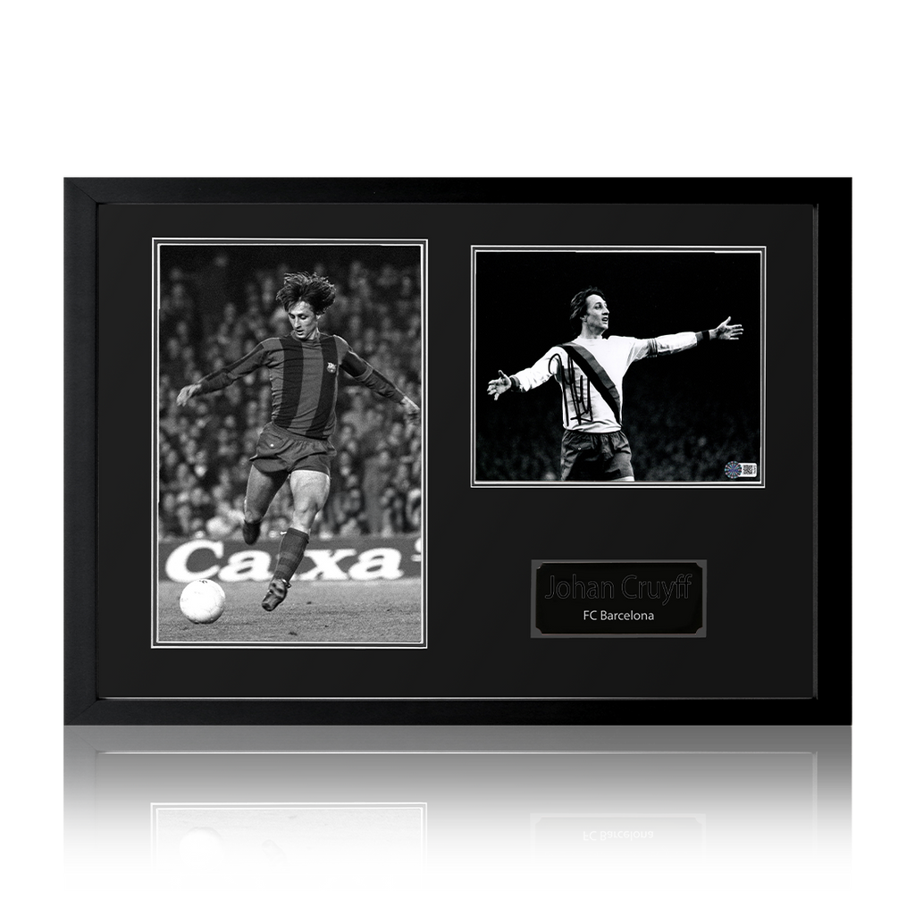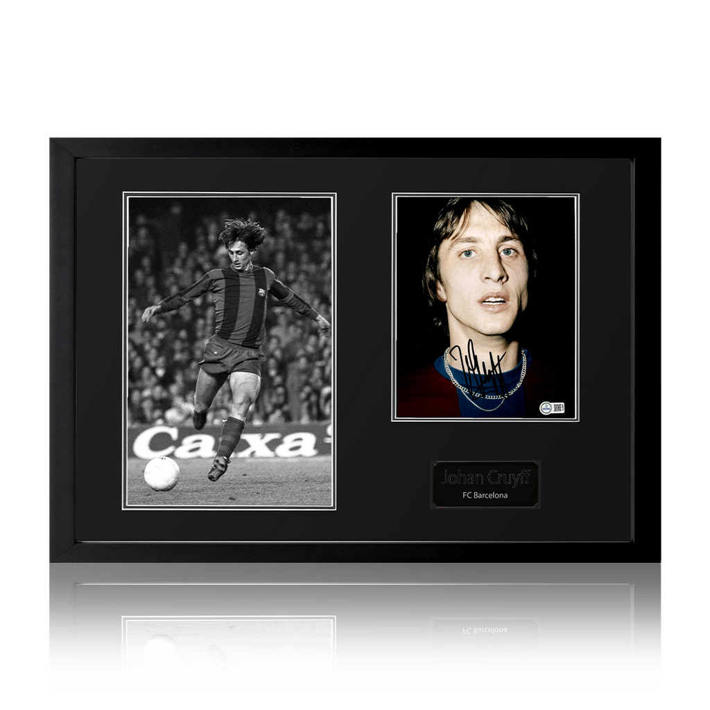 Beautifully presented Iconic Frame with signed Barcelona image of Johan Cruyff. This item measures approximately 690mm x 480mm. This item is accompanied with an certificate of authenticity from The Fan Cave.