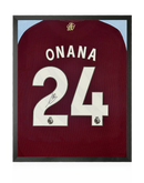 Beautifully presented Compact Frame with signed Aston Villa 24/25 shirt from Amadou Onana. The item was signed at a private signing session with The Fan Cave on the 27/02/25. This item measures approximately 520mm x 420mm and is accompanied with an certificate of authenticity from The Fan Cave.