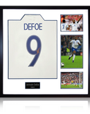 Wooden framed England display containing a shirt signed by forward, Jermain Defoe. These are England official shirts. The items were signed at a private signing exclusively with The Fan Cave on 11/05/25! This item comes with an The Fan Cave Memorabilia certificate of authenticity.