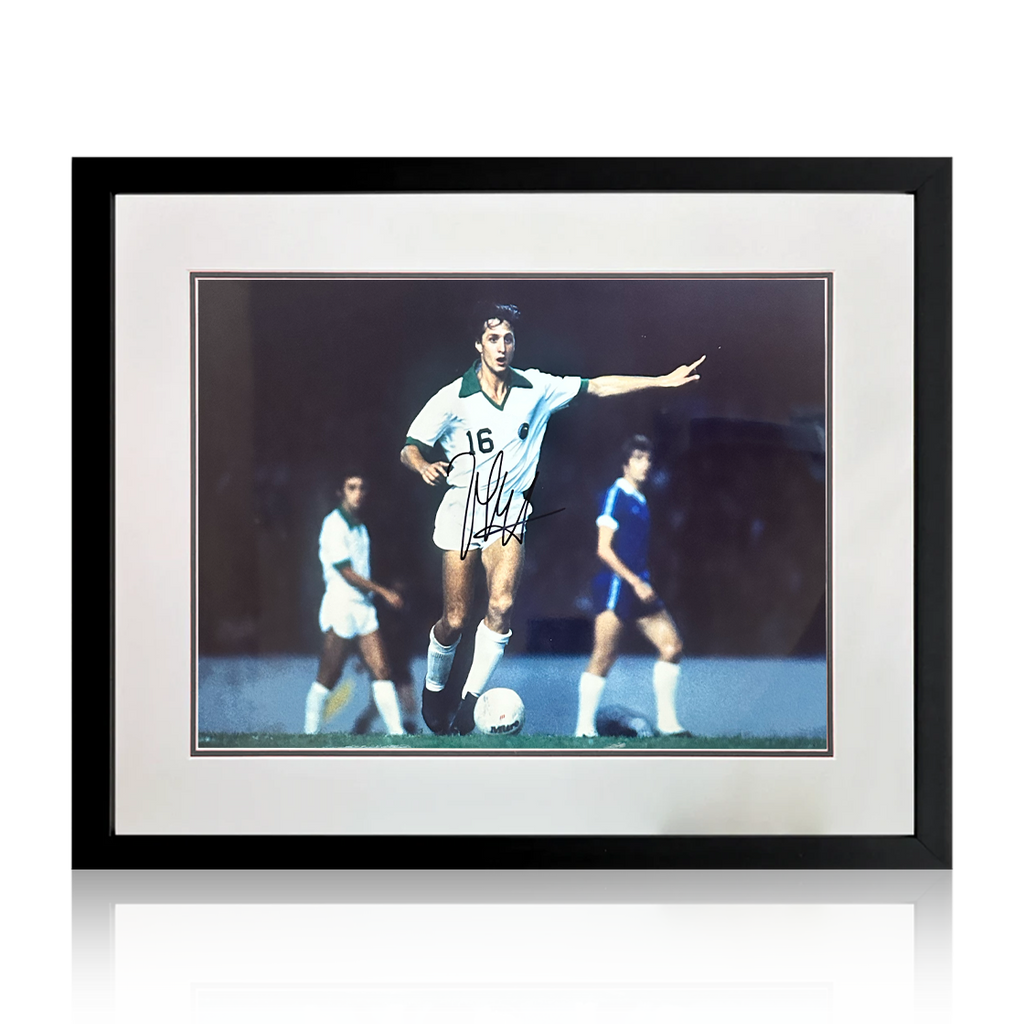 A signed 16x12 mounted image in a frame of Dutch legend Johan Cruyff. Cruyff played for New York Cosmos in exhibition games in the United States.
