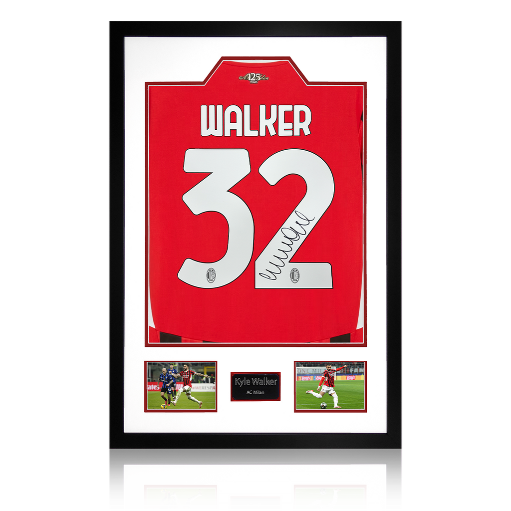 Beautifully presented Elite Frame with signed AC Milan shirt from Kyle Walker. This item was signed at an exclusive Fan Cave signing with Kyle. The frame measures approximately 820mm x 820mm. This item is accompanied with an ce...