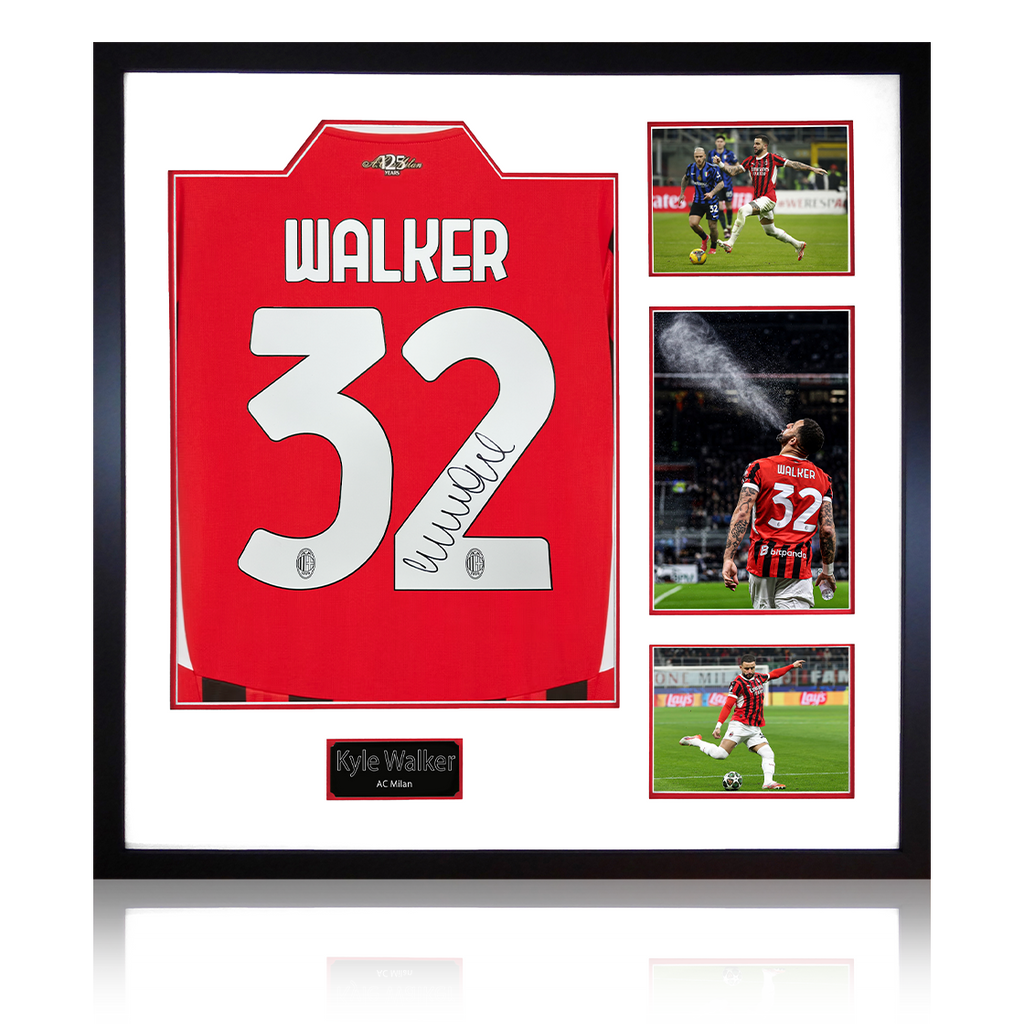 Beautifully presented Premium Frame with signed AC Milan shirt from Kyle Walker. This item was signed at an exclusive Fan Cave signing with Kyle. The frame measures approximately 690mm x 480mm. This item is accompanied with an ...