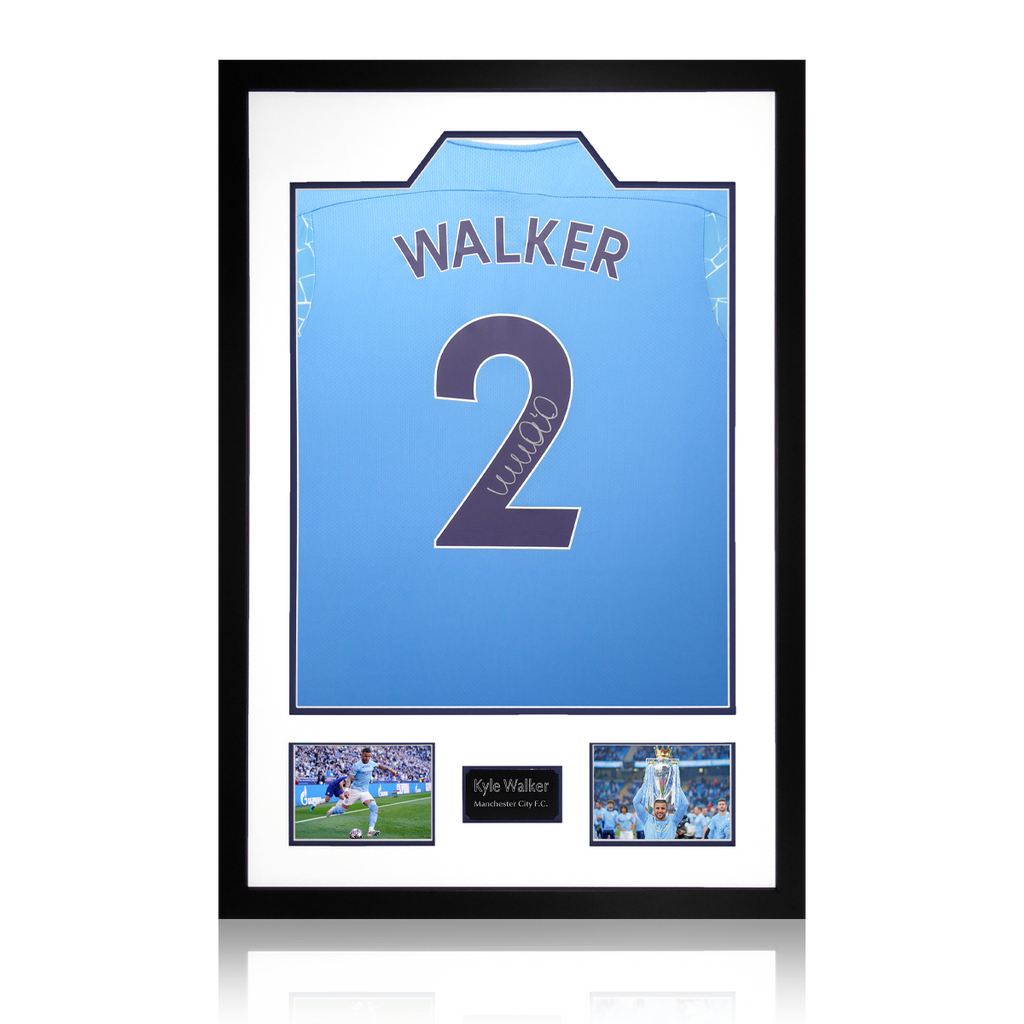 Beautifully presented Premium Frame with signed Manchester City shirt from Kyle Walker. This item was signed at an exclusive Fan Cave signing with Kyle. The frame measures approximately 690mm x 480mm. This item is accompanied w...
