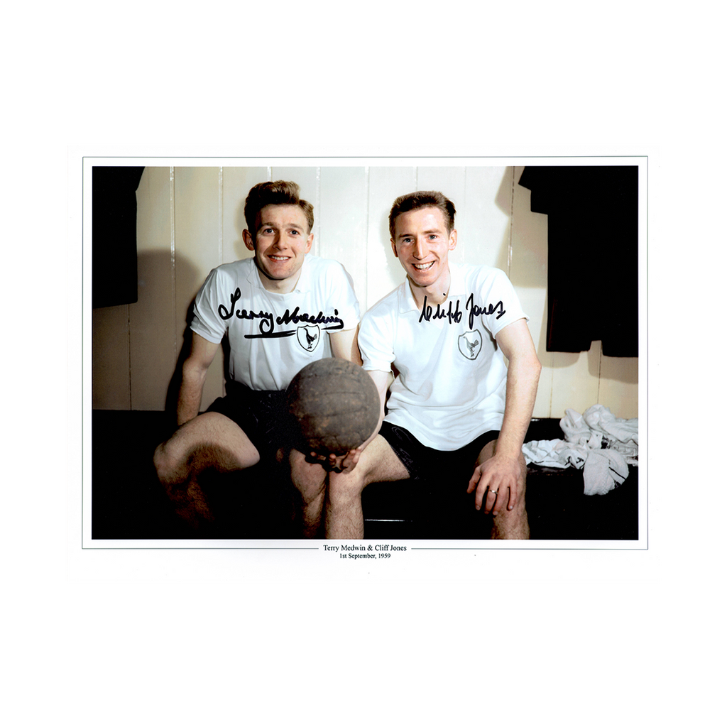 A 16x12 image signed by Terry Medwin & Cliff Jones. This item is accompanied with an certificate of authenticity from The Fan Cave.