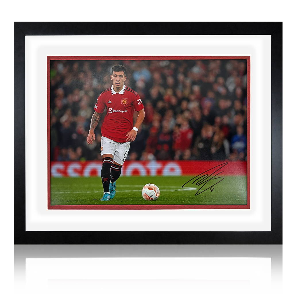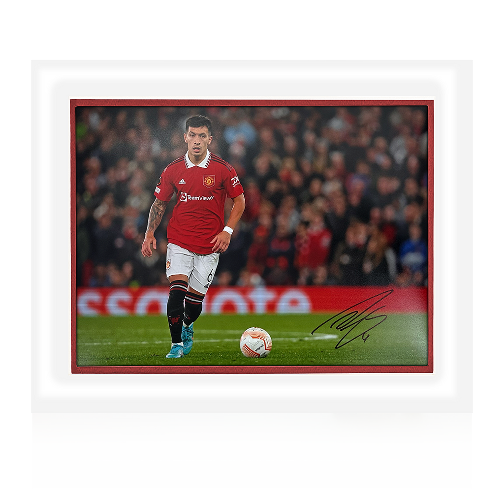 Mounted photo, signed by Manchester United defender and World Cup Winner; Lisandro Martínez.