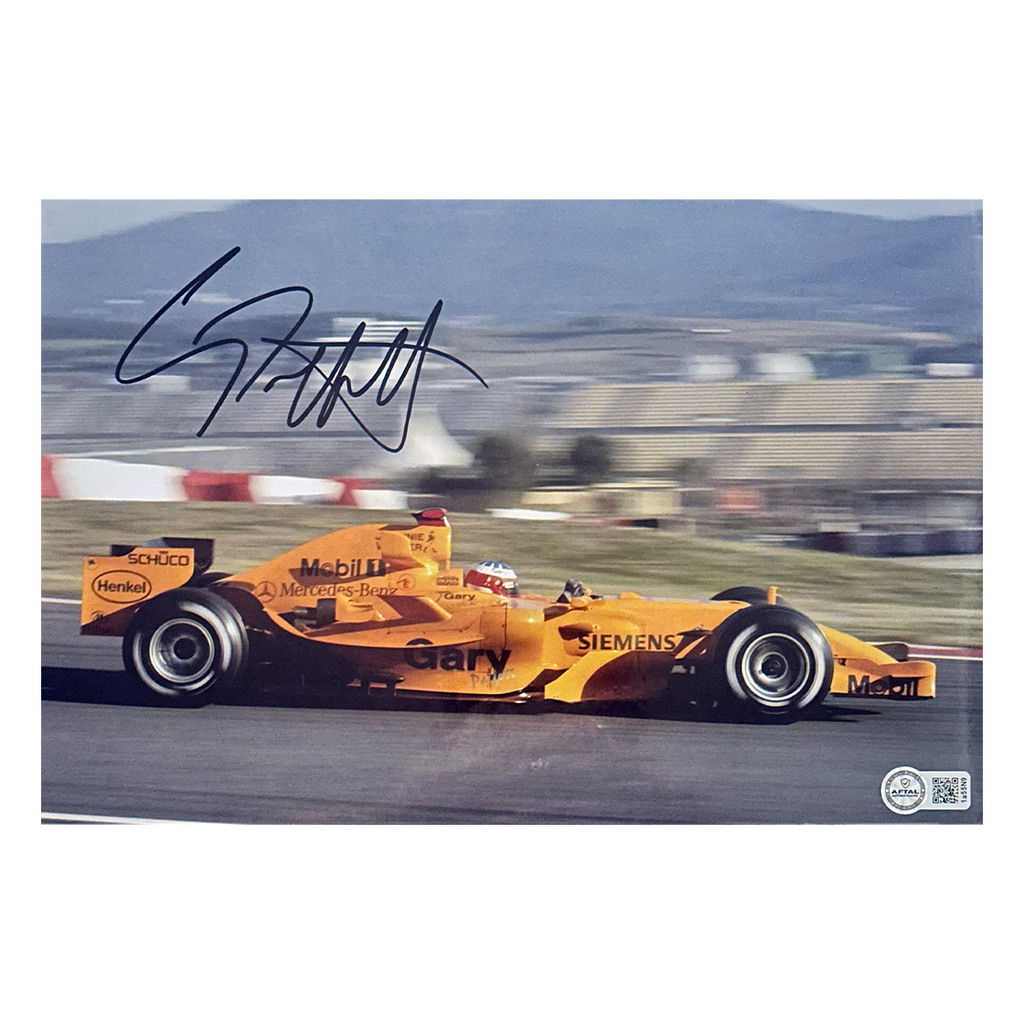 Poster mounted and framed 12x8 image signed by current Formula One world Drivers Champion; Max Verstappen. This presentation of him stood on his winning Red Bull F1 car with an etched plaque, would make a fantastic addition to ...