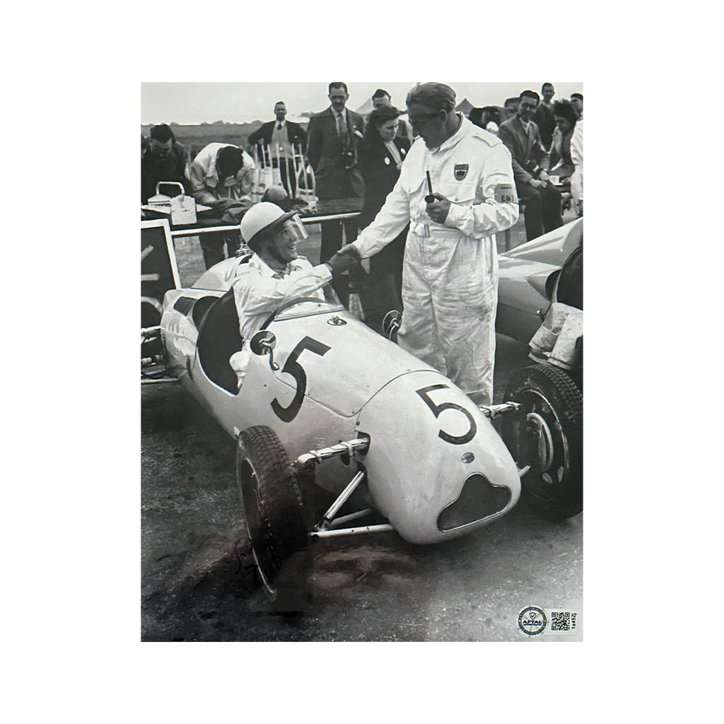 Beautiful poster mount display in a frame of 1961 Monaco Grand Prix winning Lotus 18. Includes a card signed by driver and motorsport legend Sir Stirling Moss. This item is accompanied with an certificate of authenticity from T...