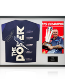 A signed Phil Taylor official shirt in a Premium Frame. This item measures approximately 850mm x 600mm. This item is accompanied with an certificate of authenticity from The Fan Cave.