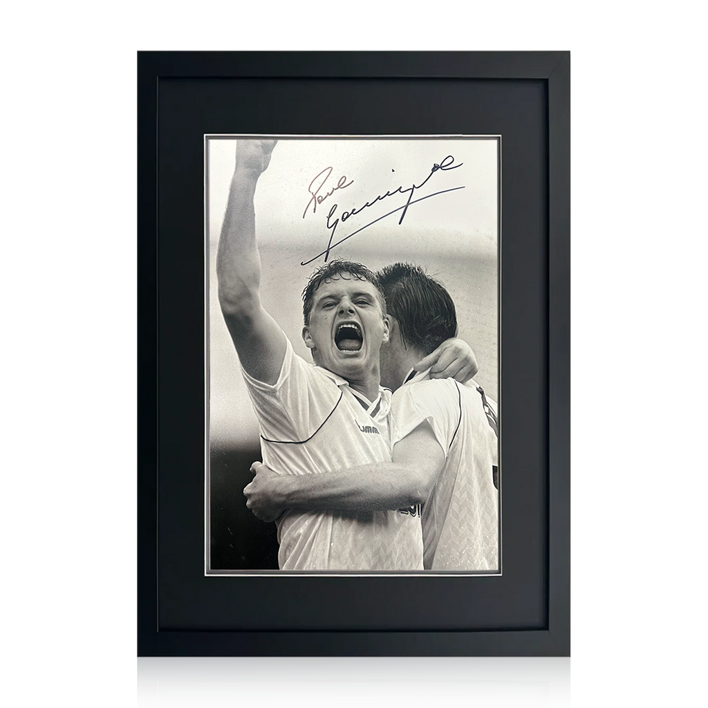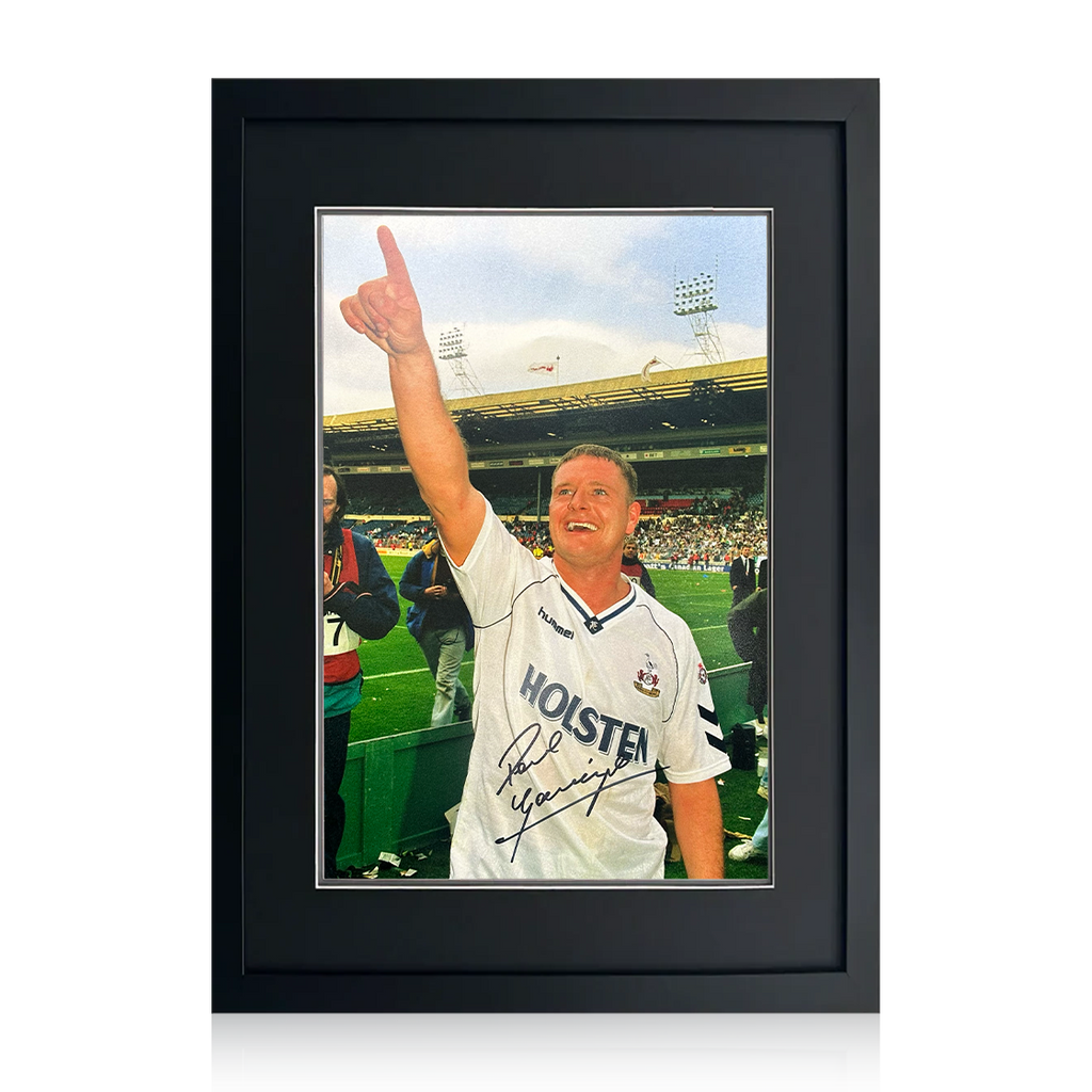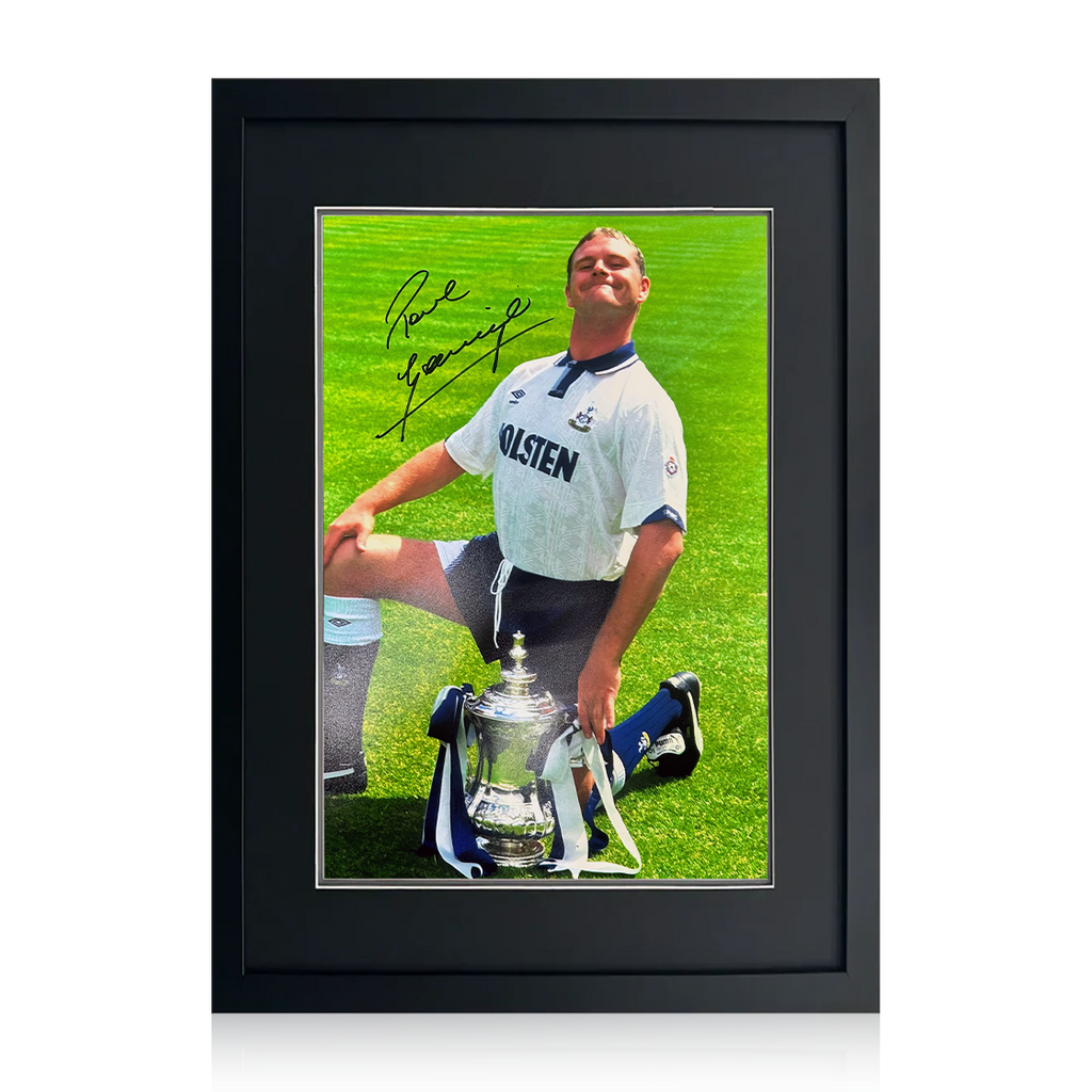 Wooden framed mount display containing a signed 18x12 Tottenham Hotspur image from legend, Paul Gascoigne. Size of the product is approximately 595 x 480mm. This item comes with an The Fan Cave Memorabilia certificate of authen...