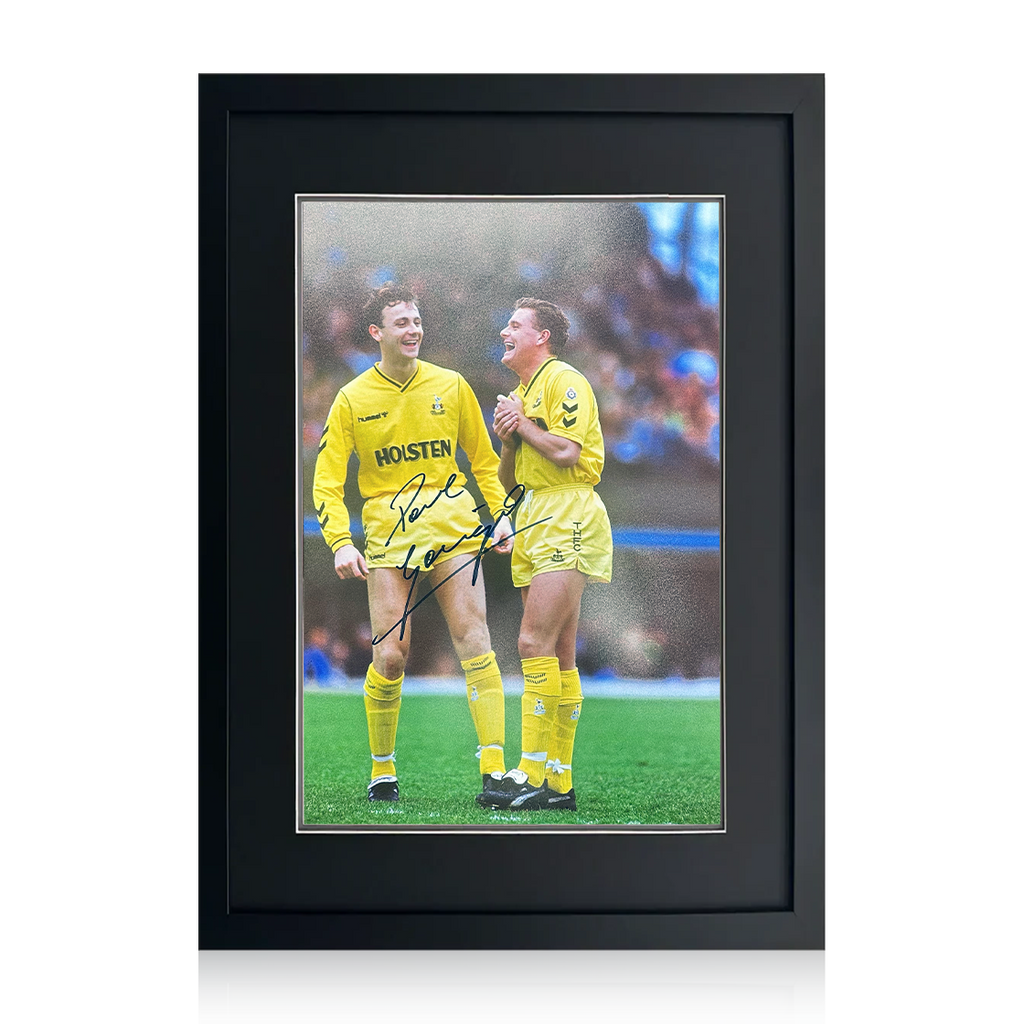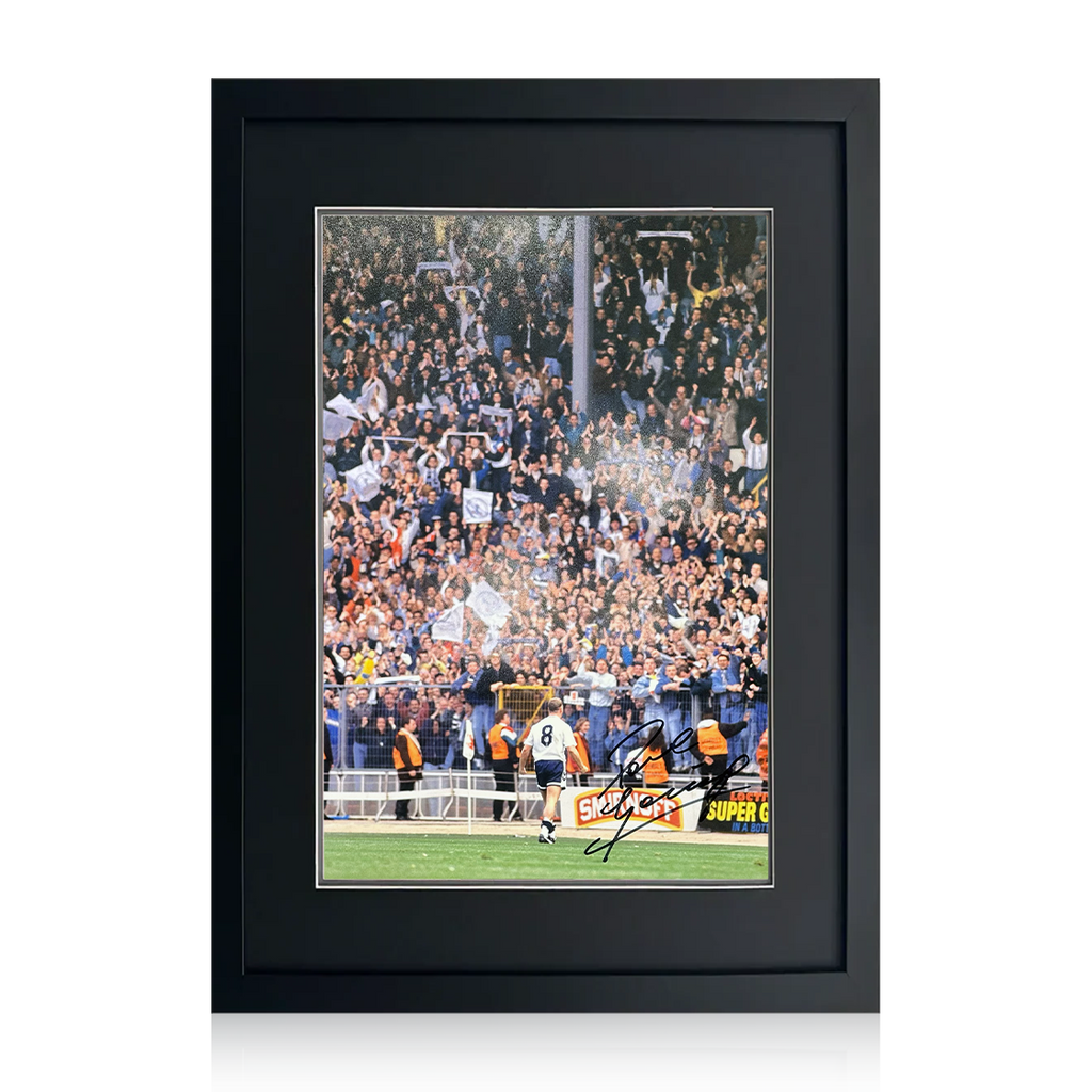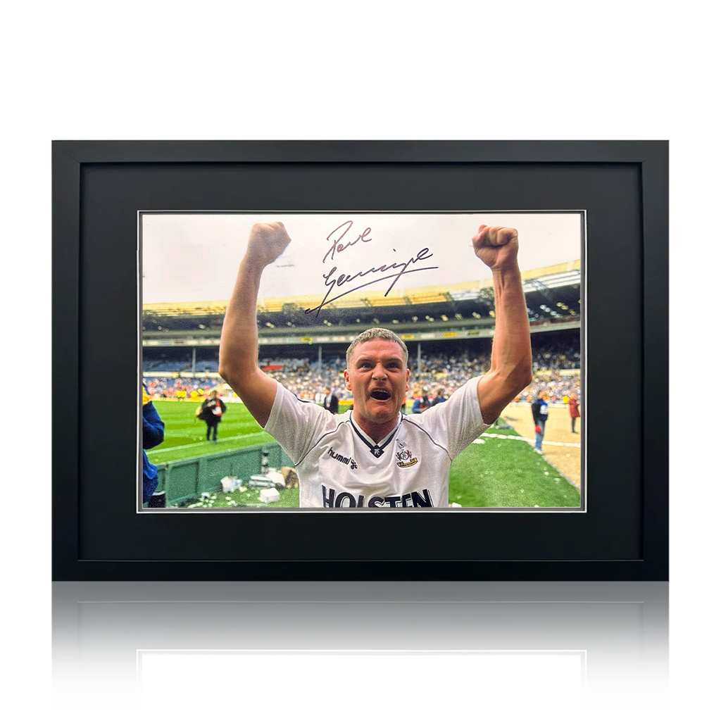 Wooden framed mount display containing a signed 18x12 Tottenham Hotspur image from legend, Paul Gascoigne. Size of the product is approximately 595 x 480mm. This item comes with an The Fan Cave Memorabilia certificate of authen...