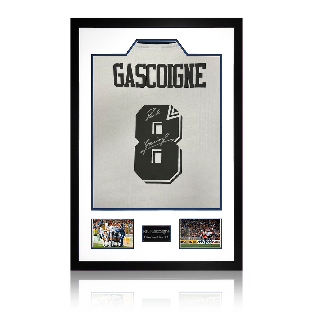 A signed Tottenham Hotspur shirt by Paul Gascoigne. This item was signed at an private Fan Cave signing with Paul on the 22nd August, 2025. This item measures approximately 750mm x 550mm. This item is accompanied with an ce...