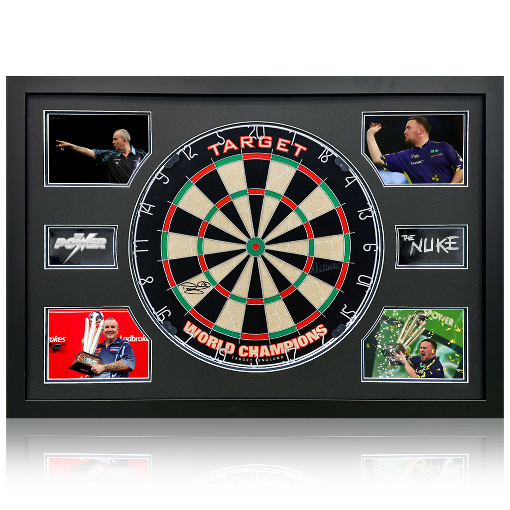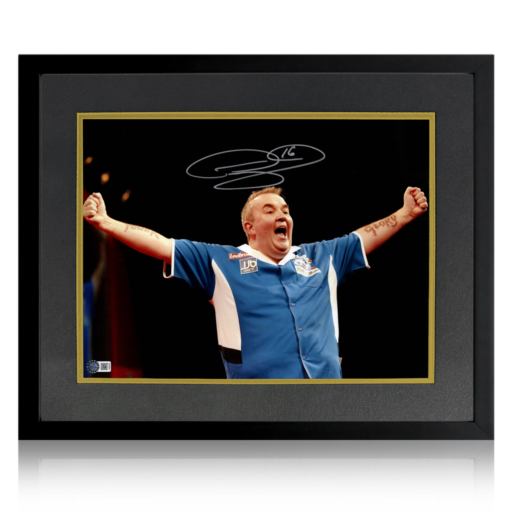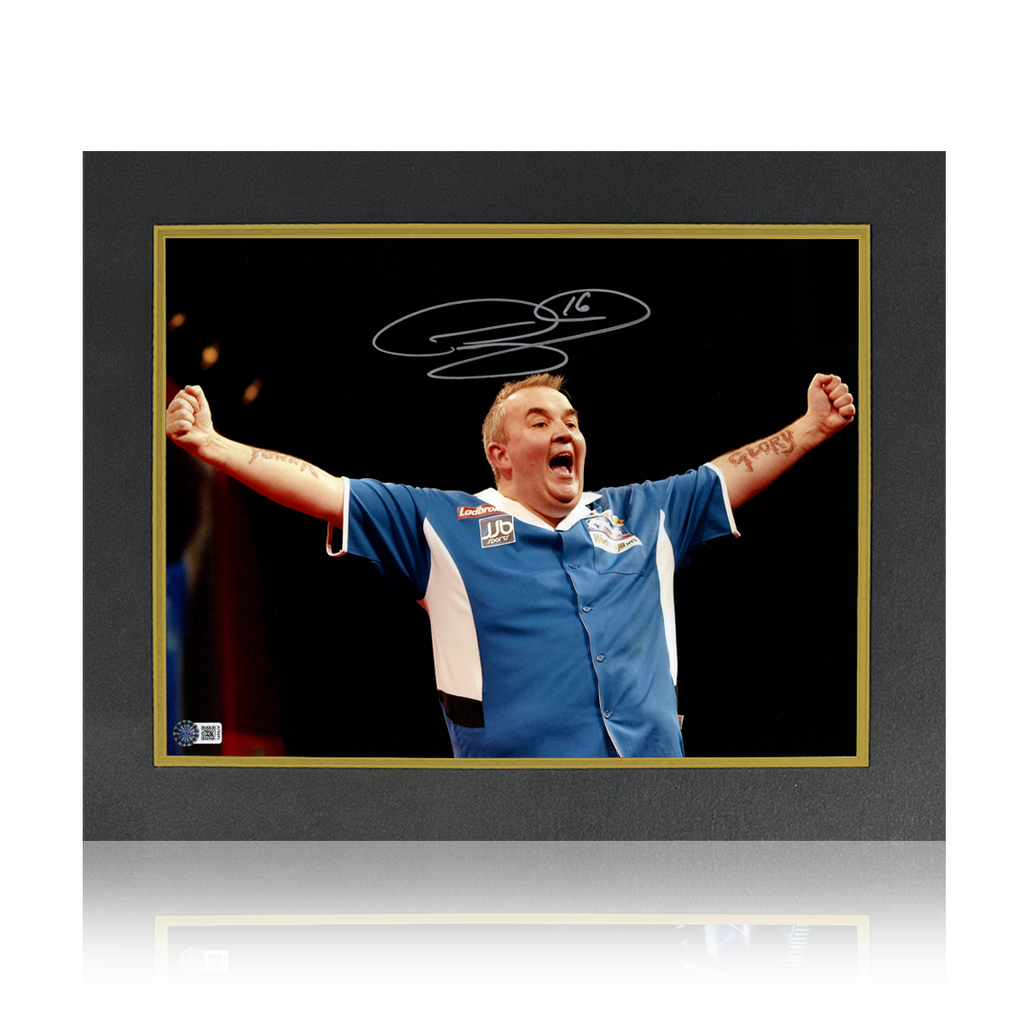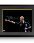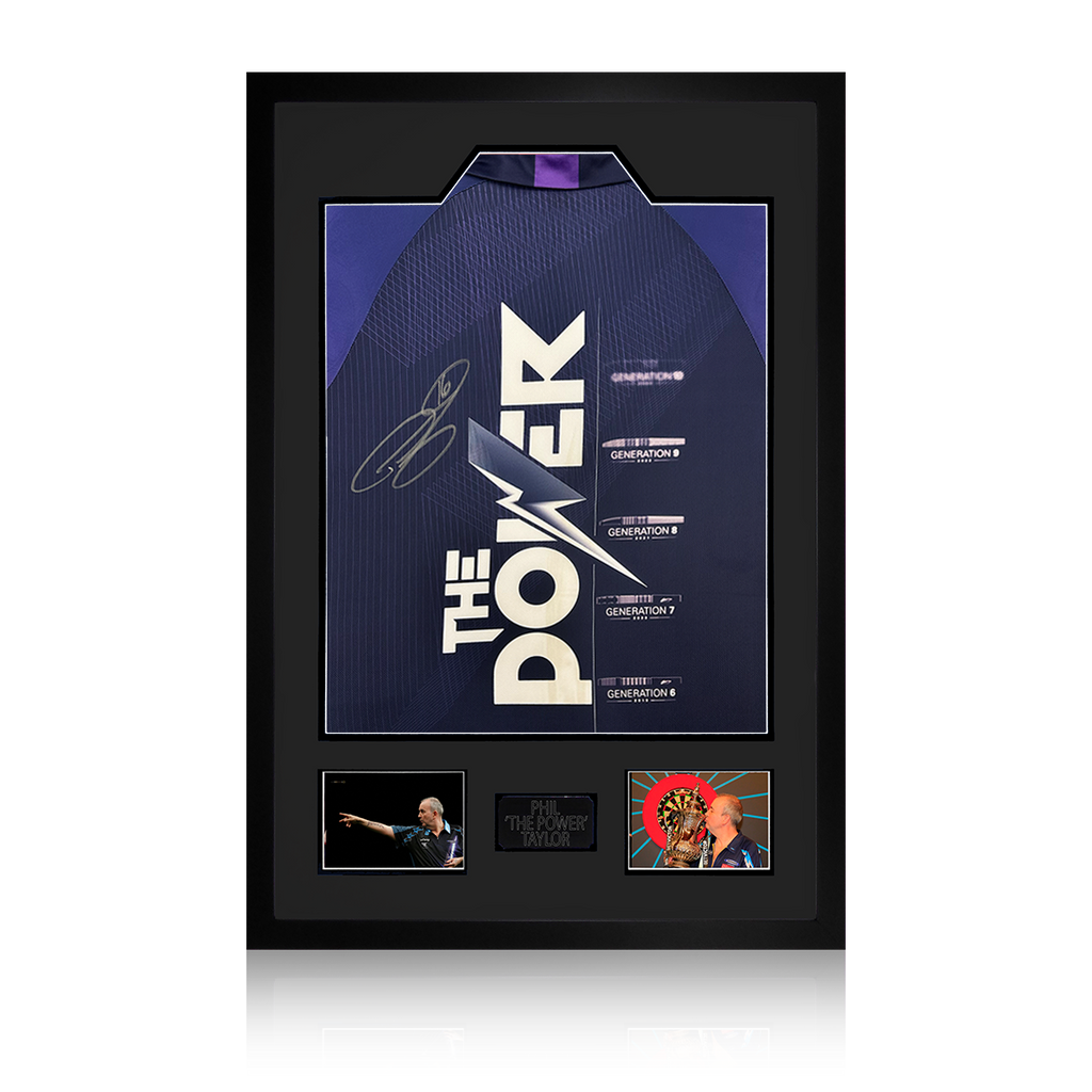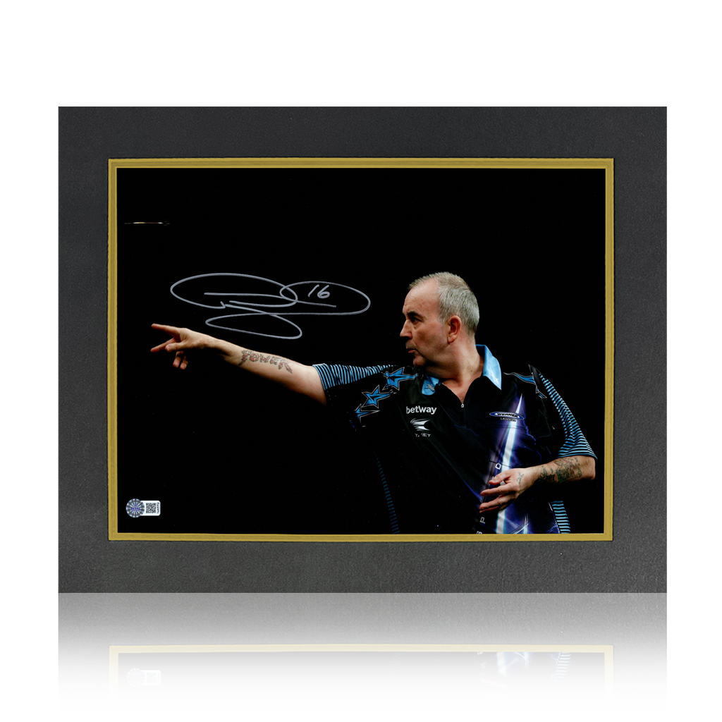 A signed Phil Taylor 16x12 image in a Deluxe Mount Frame. This item measures approximately 550mm x 450mm. This item is accompanied with an certificate of authenticity from The Fan Cave.