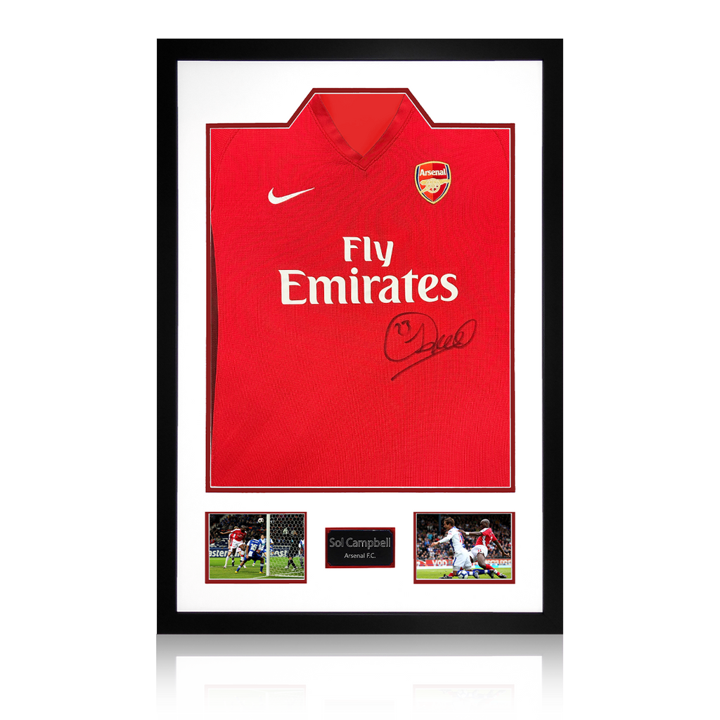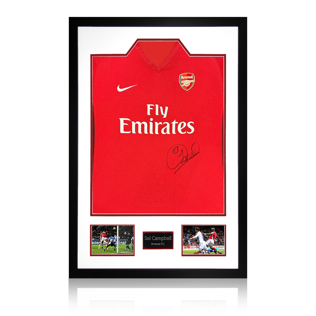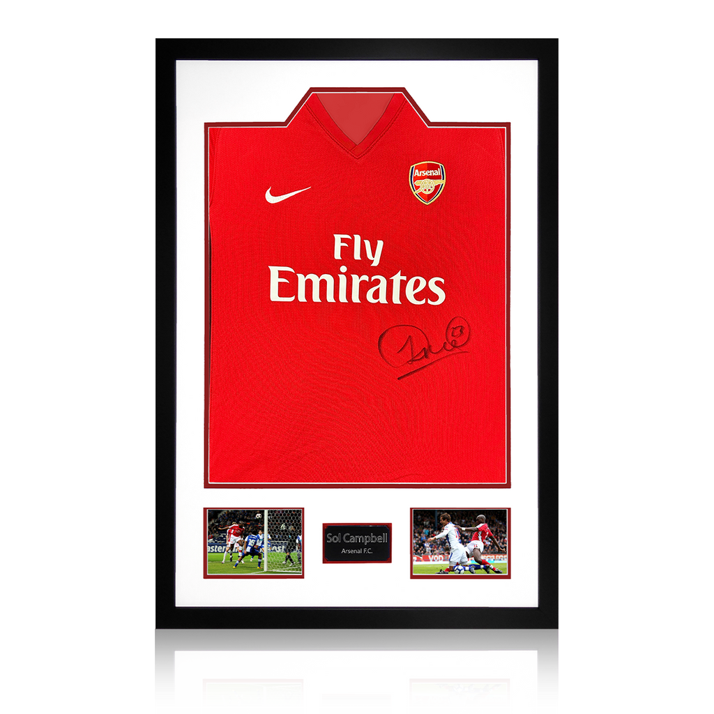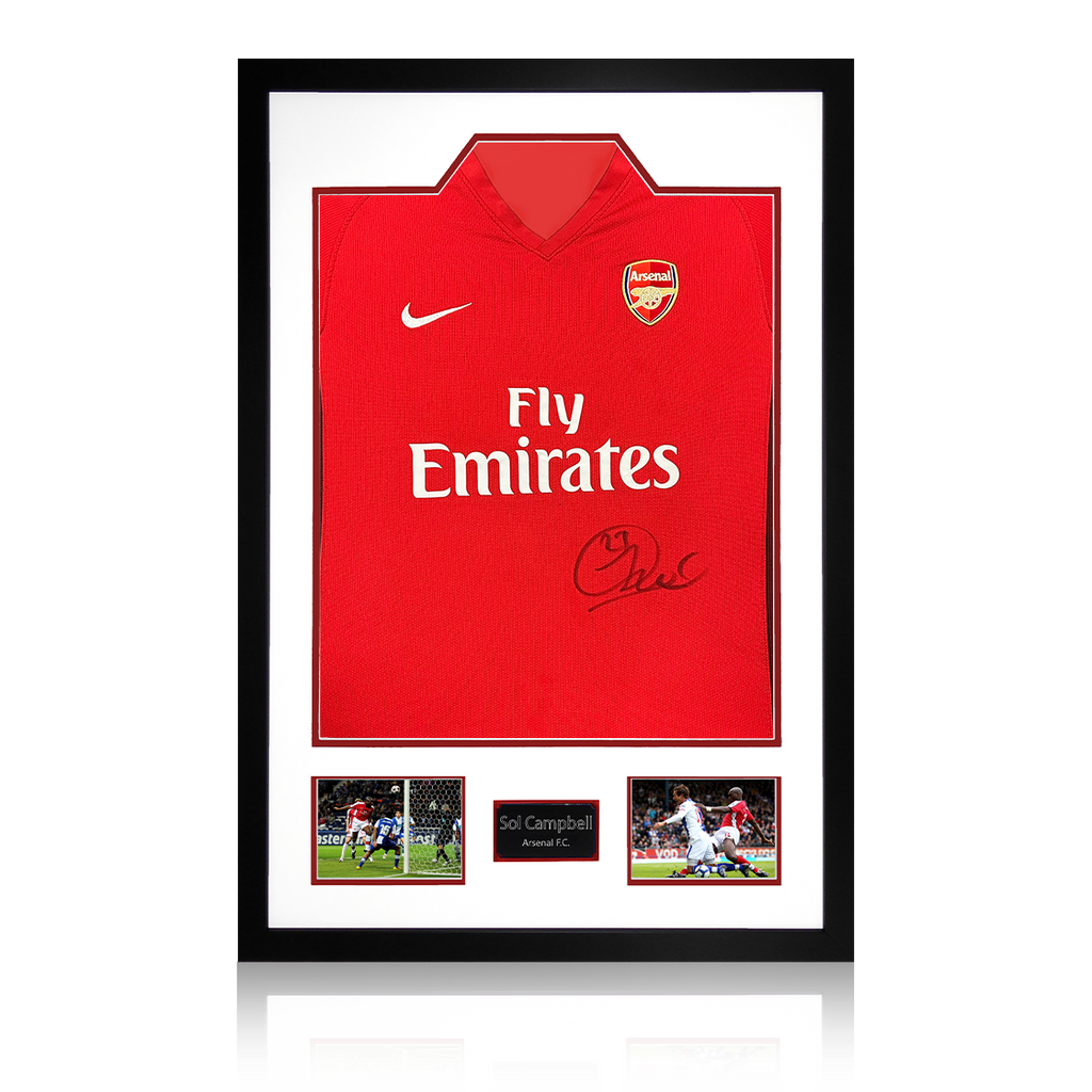 A signed authentic Arsenal 2009/10 home shirt by Sol Campbell in a Premium Frame. The item was signed at a private signing on the 06/03/25. This item is accompanied with an certificate of authenticity from The Fan C...