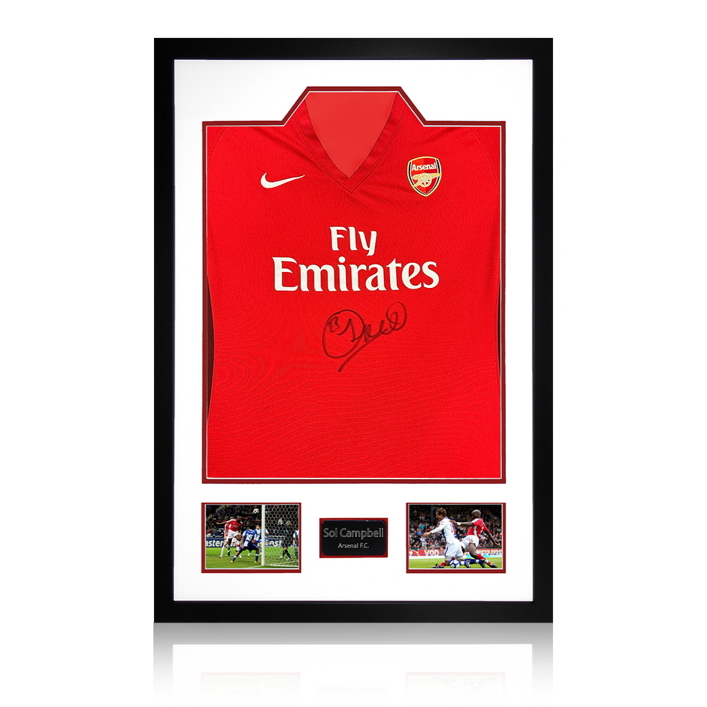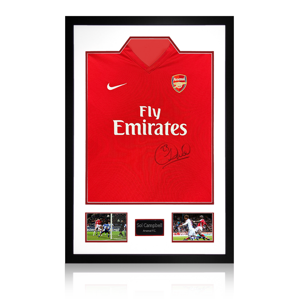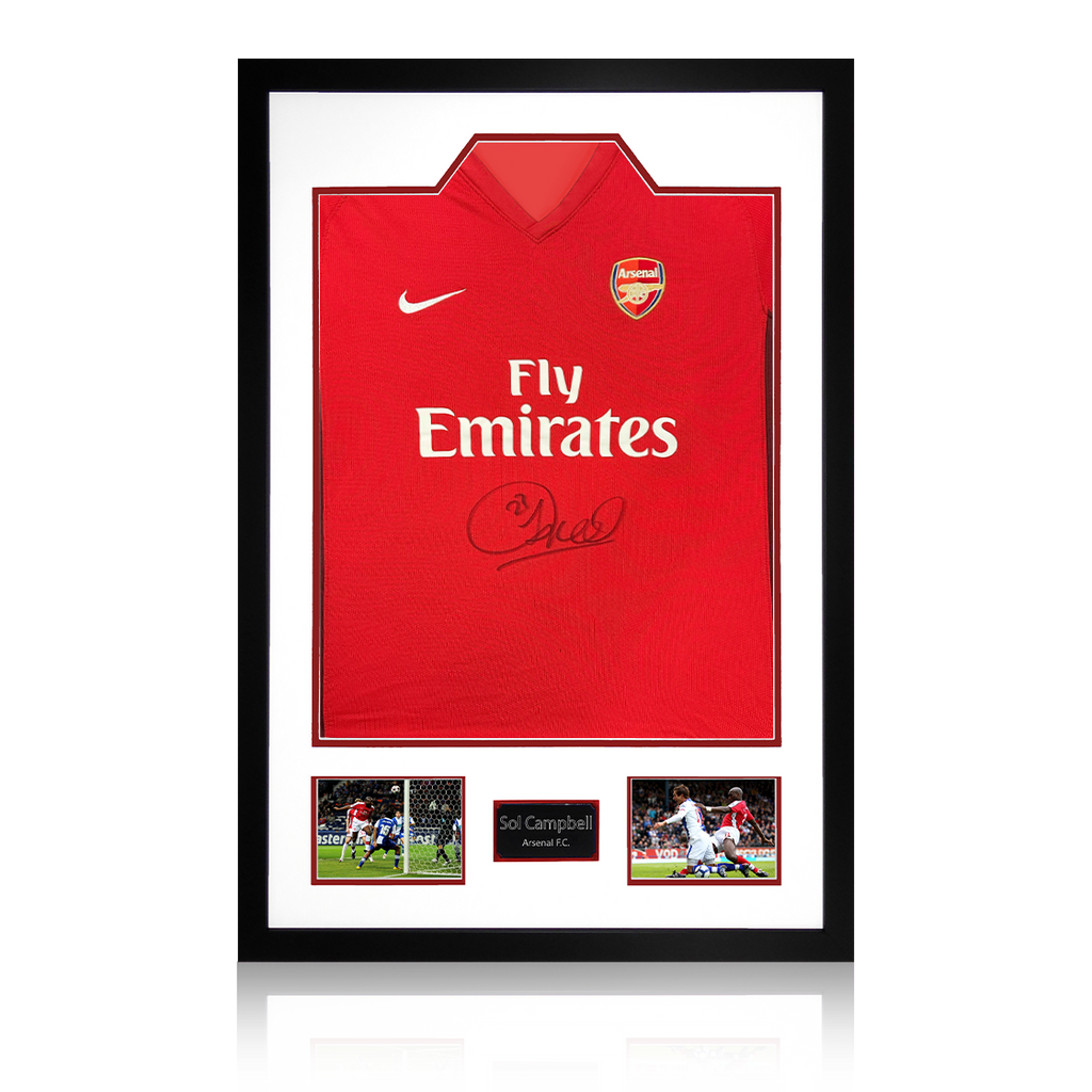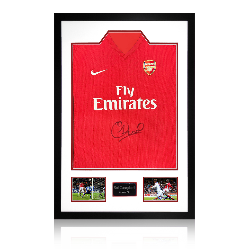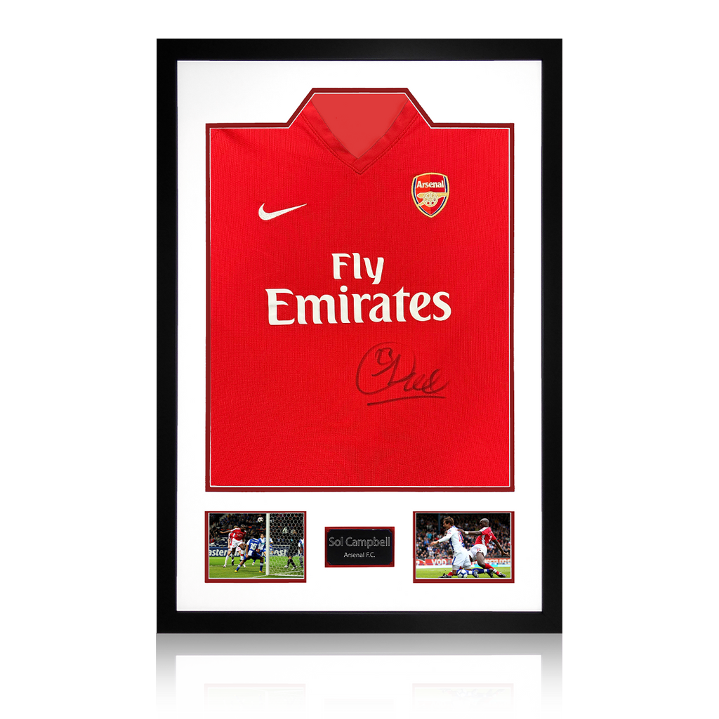 A signed authentic Arsenal 2009/10 home shirt by Sol Campbell in a Premium Frame. The item was signed at a private signing on the 06/03/25. This item is accompanied with an certificate of authenticity from The Fan C...