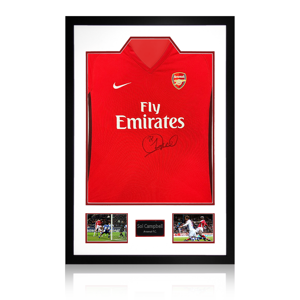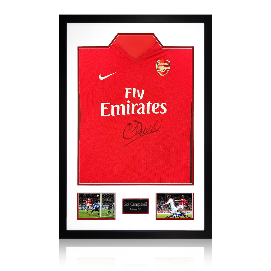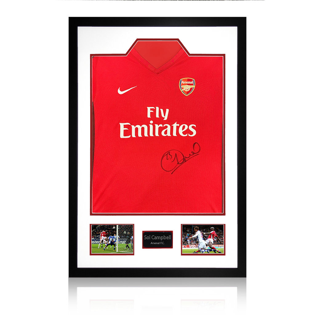 A signed authentic Arsenal 2009/10 home shirt by Sol Campbell in a Premium Frame. The item was signed at a private signing on the 06/03/25. This item is accompanied with an certificate of authenticity from The Fan C...