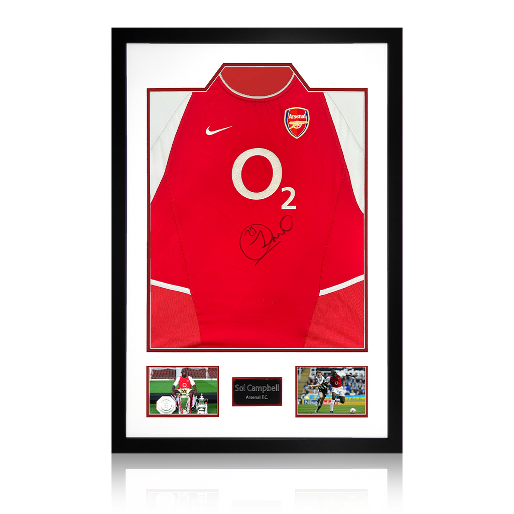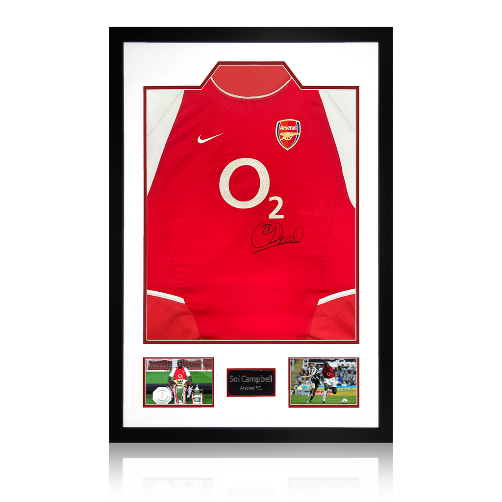 A signed authentic Arsenal 2002/04 home shirt by Sol Campbell in a Premium Frame. The item was signed at a private signing on the 06/03/25. This item is accompanied with an certificate of authenticity from The Fan C...