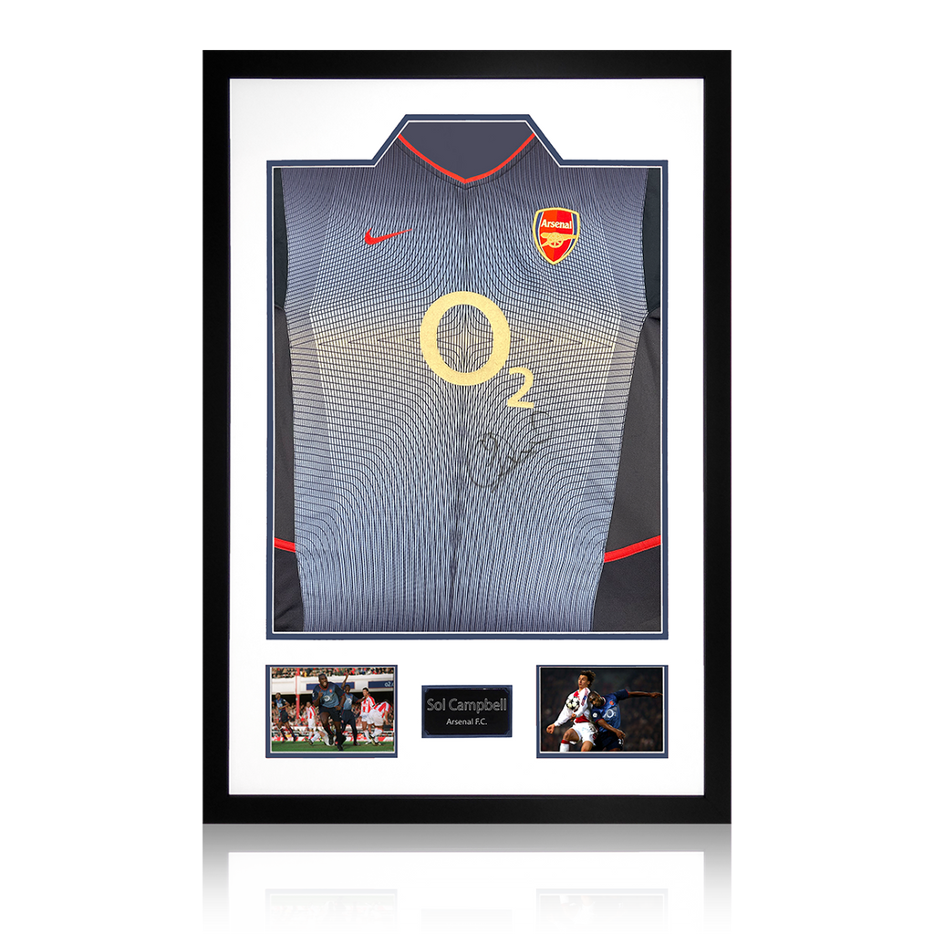 A signed authentic Arsenal 2002/04 away shirt by Sol Campbell in a Premium Frame. The item was signed at a private signing on the 06/03/25. This item is accompanied with an certificate of authenticity from The Fan C...