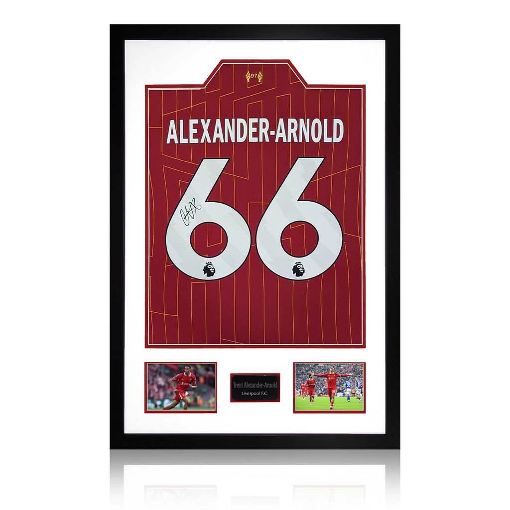 Beautifully presented Premium Frame with signed Liverpool 24/25 shirt from Trent Alexander-Arnold. The autograph includes an official AFTAL Authentication hologram for authenticity purposes. This item measures approximately 690...