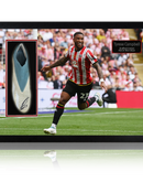 Sheffield United display with a signed match-worn boot by Tyrese Campbell. The United forward's boot is from the 24/25 season against Sunderland A.F.C. in the Play-Off final. This is the left boot. This item measures approximately 690mm x 480mm. This item is accompanied with an certificate of authenticity from The Fan Cave.