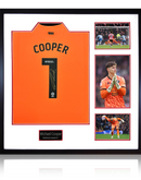 Wooden framed SUFC display containing an etched plaque and a shirt signed by goalkeeper Michael Cooper. These are Sheffield United official shirts by signed at a private signing exclusively with The Fan Cave in 2024!