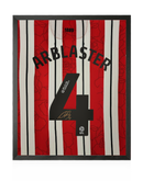 Wooden framed SUFC display containing a shirt signed by midfielder Ollie Arblaster. These are Sheffield United official shirts by signed at a private signing exclusively with The Fan Cave in 2024!