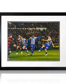 Signed framed mounted photo of forward Bailey-Tye Cadamarteri. These framed mounts are designed to fit an off the shelf size frame and make a great addition to any collection. Signed as part of a private signing with The Fan Cave in 2023!