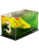 Case display, containing a football boot signed by a former Manchester United player, Patrice Evra. The former captain played for The Red devils from 2006 to 2014 making 379 appearances.