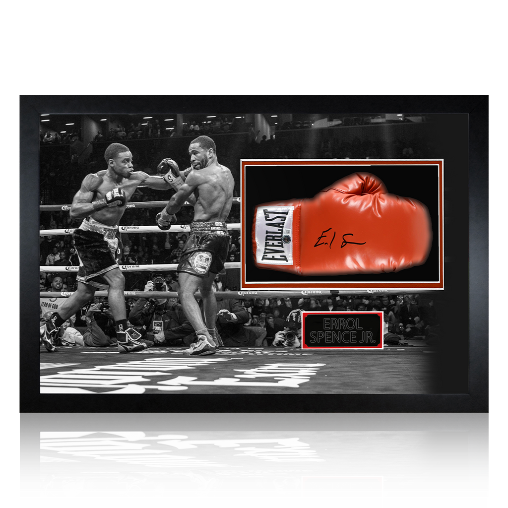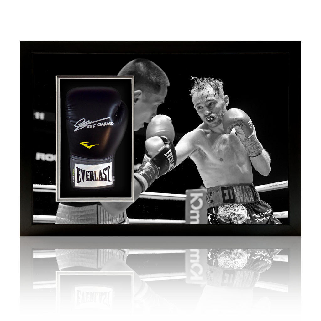 Framed signed boxing glove poster mount display by Sunny Edwards. Sunny "Showtime" Edwards is a former IBF World Champion which he held from April 2021 to December 2023. Signed at a private signing with former IBF world ch...