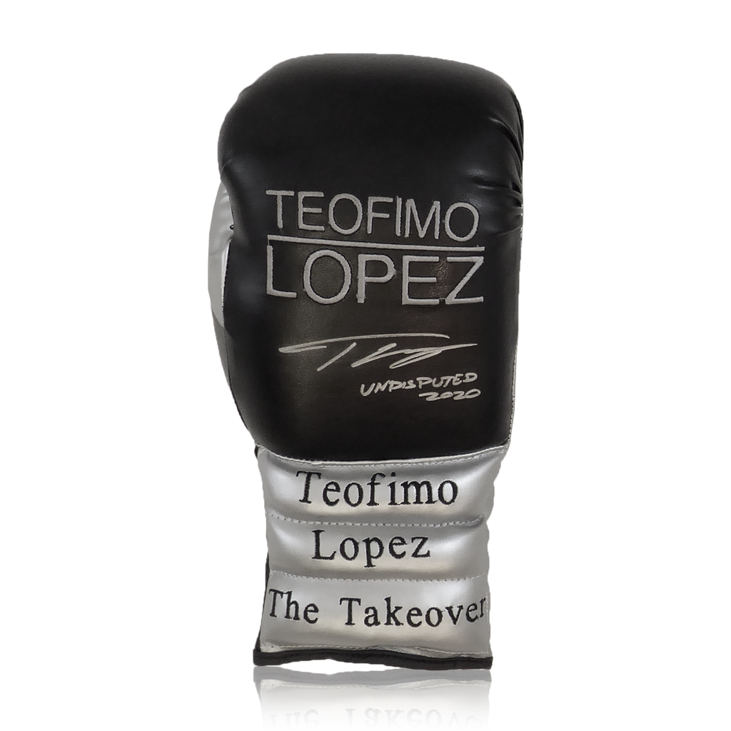 A signed boxing glove by Teofimo Lopez. The Takeover has had 17 fights with a record of 16 wins and 1 loss. Out of the 16 wins, 7 of those fights ending in a KO.  What authenticity do you provide? We provide a COA (certificate ...