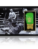 Green Gypsy King boxing glove in a real wood frame with custom box rear to allow the front acrylic to be flat. The glove is full size and has been signed by former WBC World Heavyweight Champion; Tyson Fury. You may receive either a right or left hand glove.