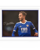 A Mounted Photo Signed by James Maddison who's 20/21 season with Leicester helped the Foxes to 5th in the Premier League and to the clubs first ever FA cup win. This item was signed at an exclusive Fan Cave signing with James on 02/04/23.