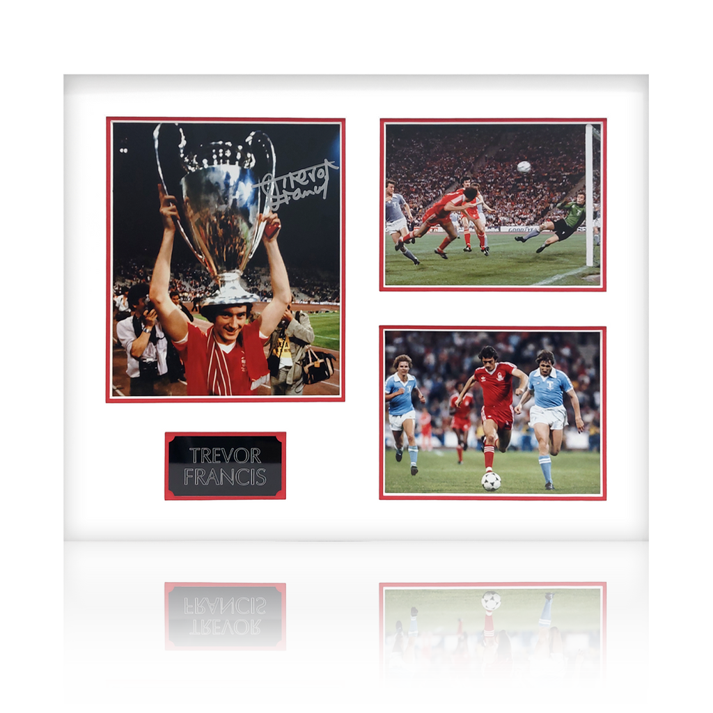 Double mounted photo in a frame of football legend Trevor Francis. The first one million pound player in history.