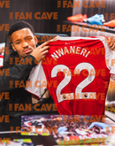 A signed Arsenal shirt by Ethan Nwaneri. This item was signed at an private Fan Cave signing with Ethan on the 11th December, 2025. This item measures approximately 820mm x 820mm. This item is accompanied with an certificate of authenticity from The Fan Cave.